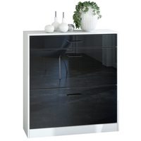 HAUSS SPOLE Vitrine Hochglanz Lagerschrank mit LED-Beleuchtung, 1 Glasboden schwarz (Highboard, Aufbewahrungsschrank, Hochschrank, Lagerschrank , 1-St., 1 Glasboden, 2 Türen) Hochglanz Vitrine, mit LED-Beleuchtung