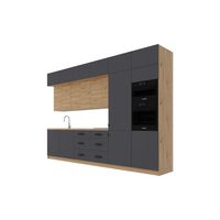 Vladon Wohnwand Moja, (Anbauwand, mit Rückwand mit 4 Türen und 2 Klappen), Weiß matt/Weiß Hochglanz und Sandgrau Hochglanz (330 x 204 x 39 cm)
