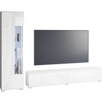 Vladon Wohnwand Movie, (Anbauwand, bestehend aus 1 TV-Board, 2 Vitrinen und 1 Regal), Weiß matt/Weiß matt/Weiß Hochglanz (Gesamt: 300 x 190 x 39 cm)