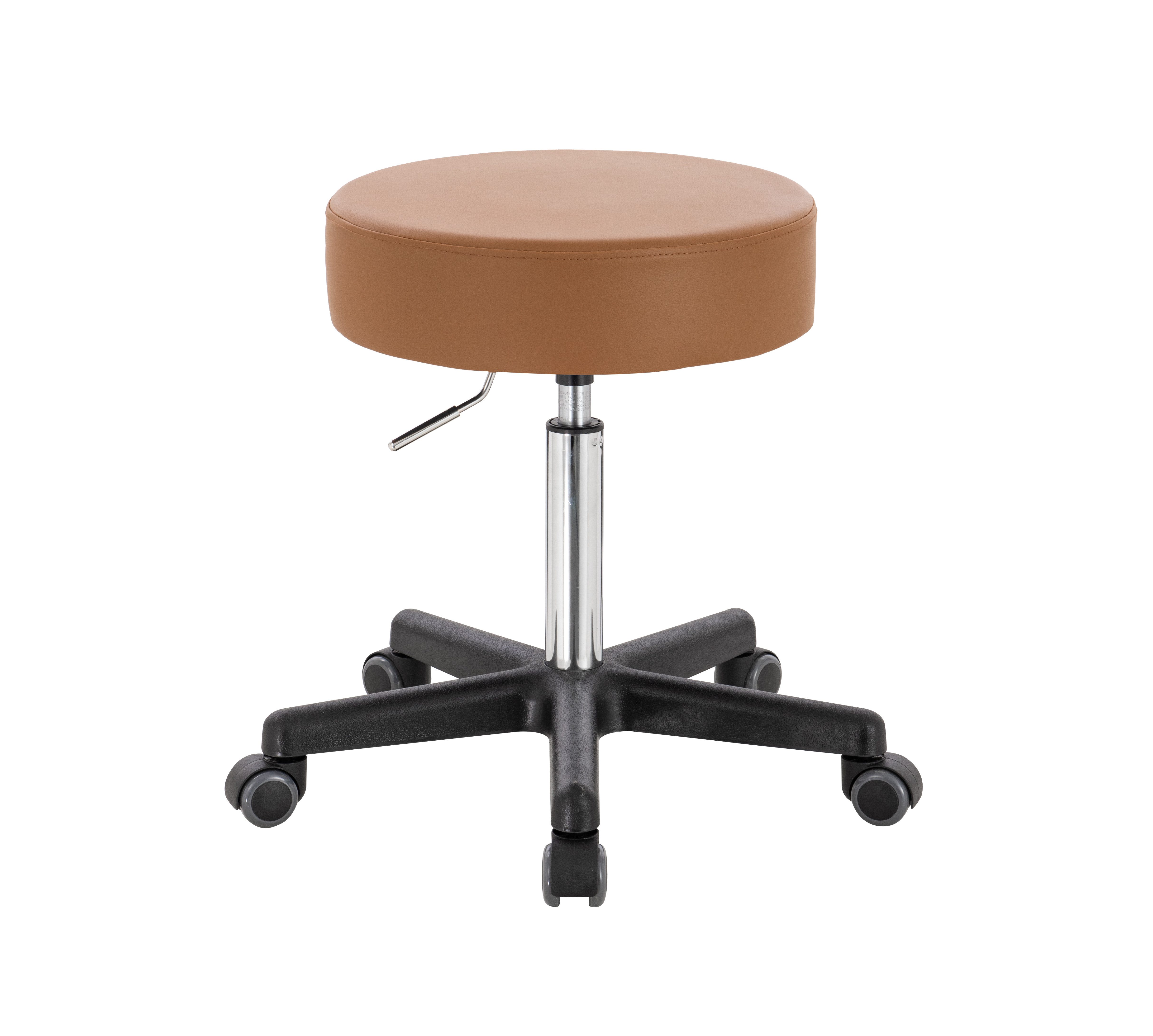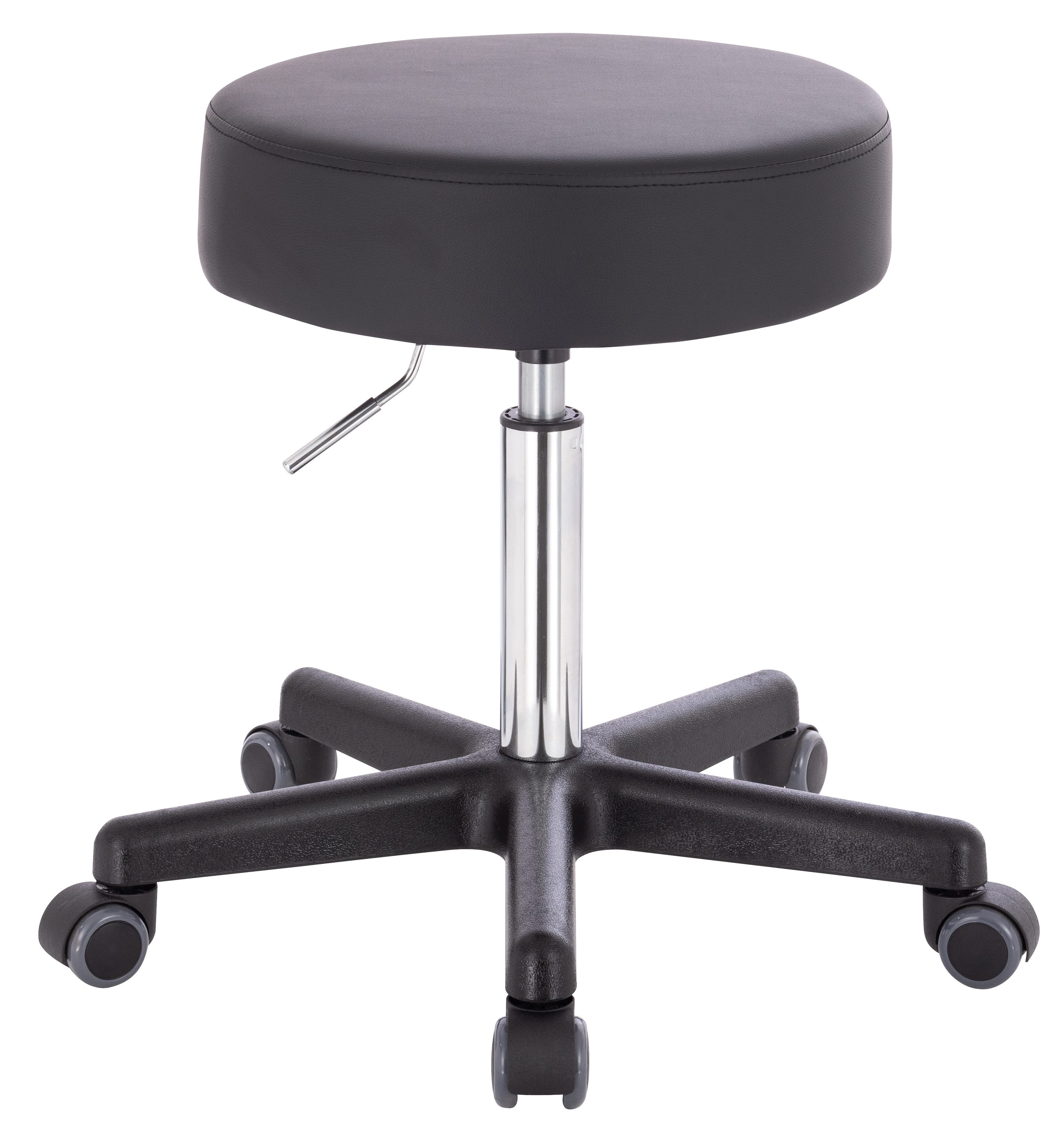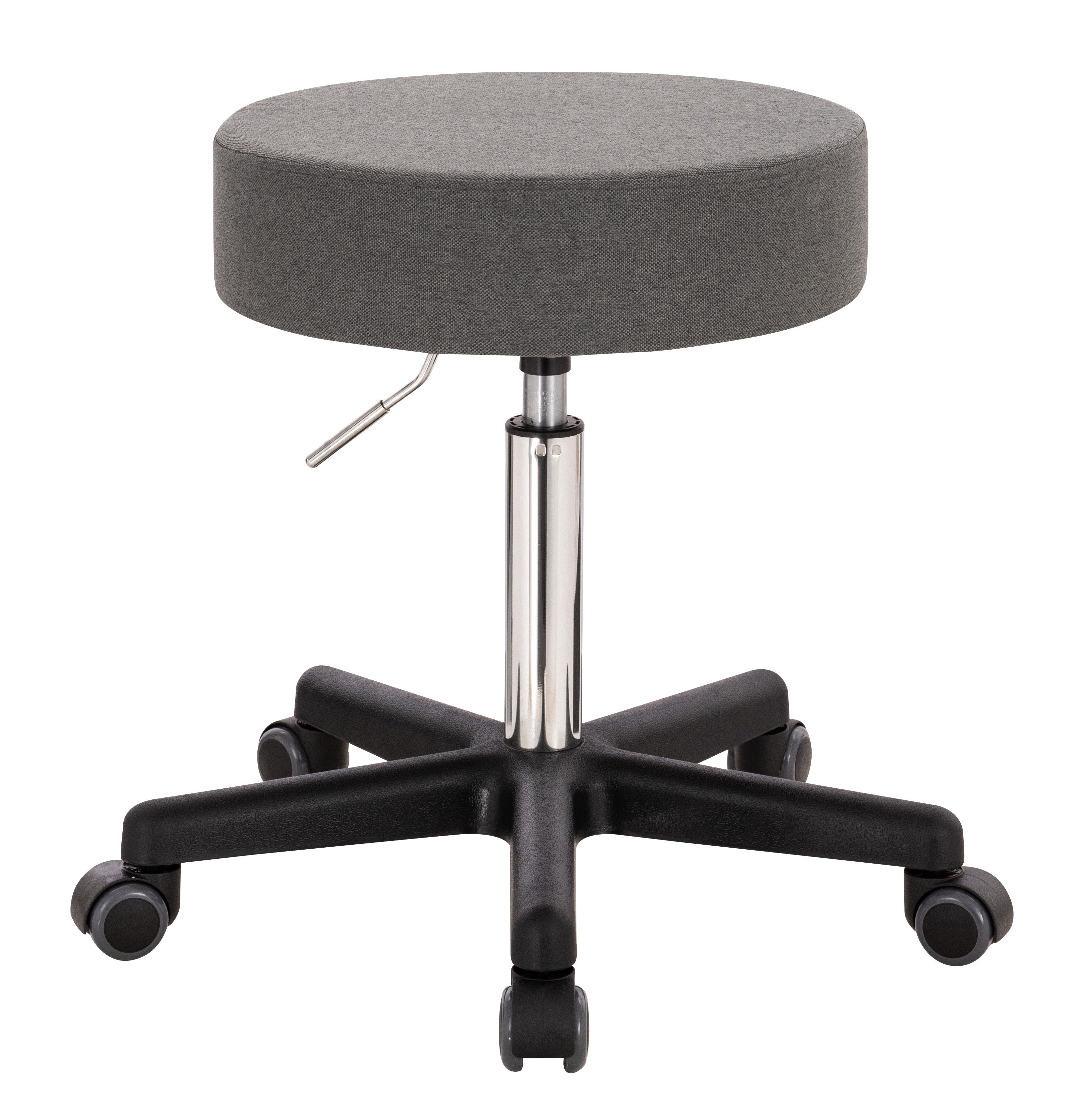 Der ca. 10cm dick gepolsterter Sitz ist um 360° frei drehbar und die Sitzhöhe lässt sich stufenlos von ca. 50 bis ca. 70 cm einstellen