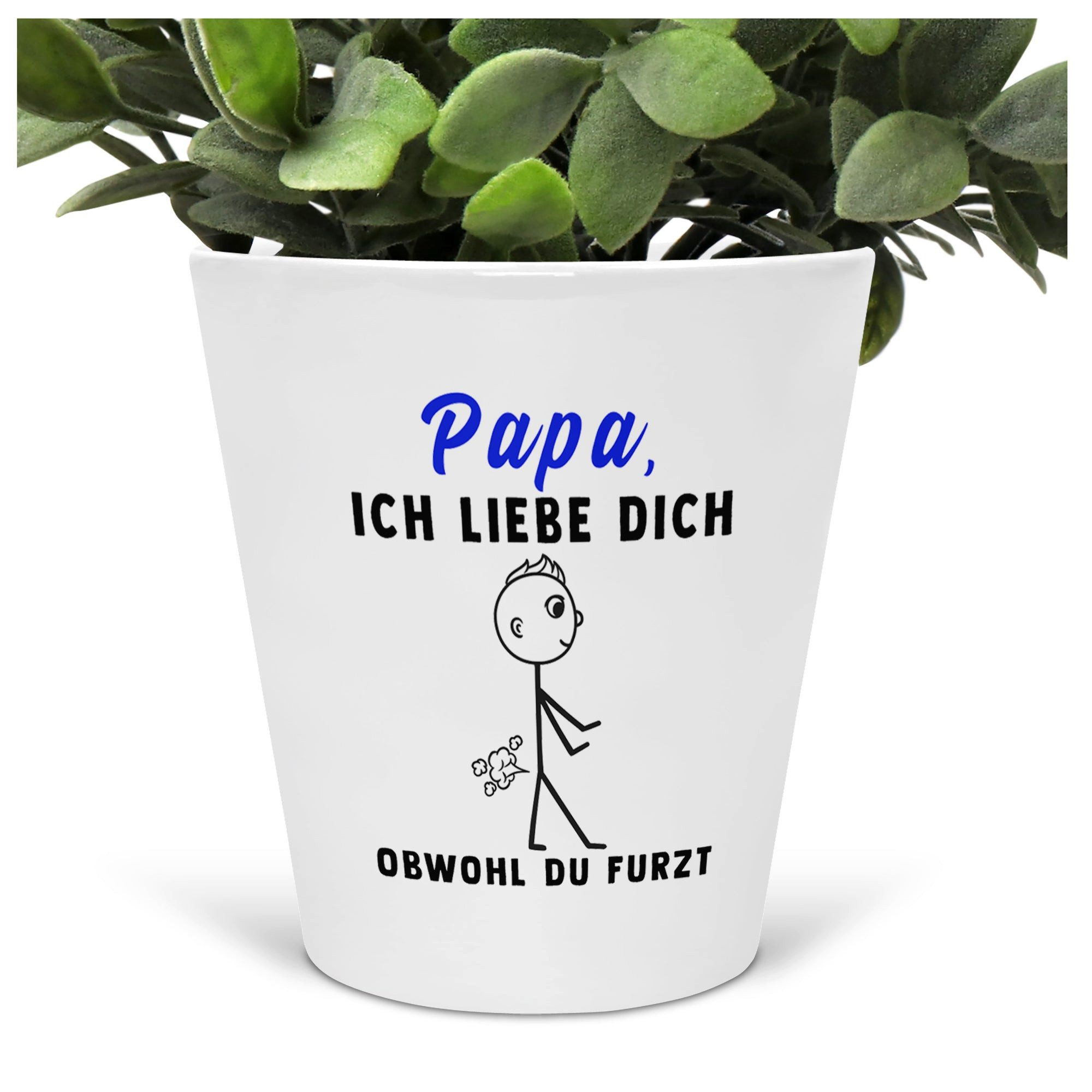 In Deutschland bedruckter weisser Blumentopif mit folgendem Spruch bzw. Motiv: Papa, Ich Liebe Dich, Obwohl Du Furzt