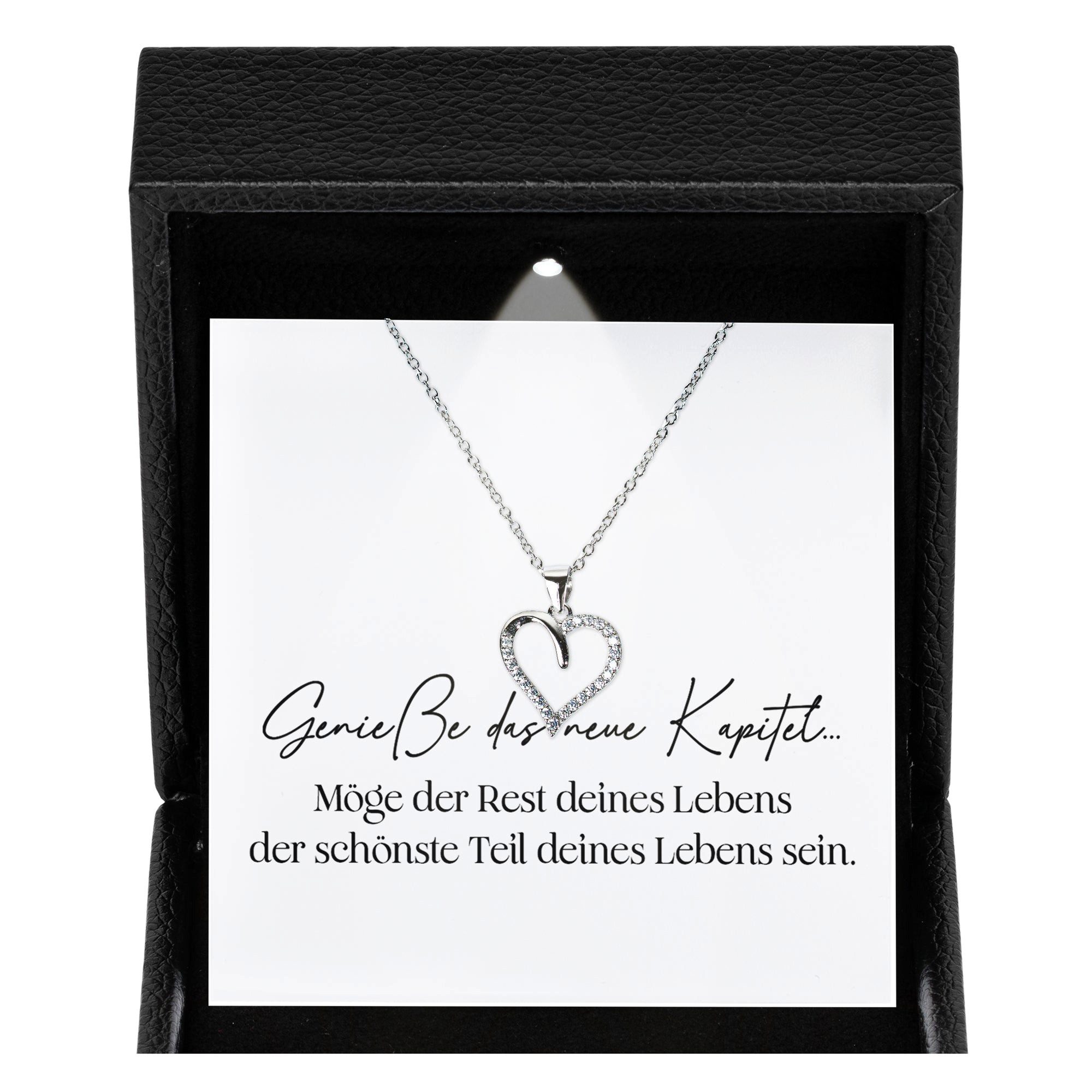 Diese Halskette beeindruckt nicht nur durch ihr Design, sondern auch durch ihre außergewöhnliche Präsentation: Das hochwertige Etui aus strukturiertem, schwarzem PU-Leder enthält ein integriertes LED-Licht, das beim Öffnen automatisch aktiviert wird und sowohl die funkelnde Kette als auch die liebevolle Botschaftskarte perfekt in Szene setzt.