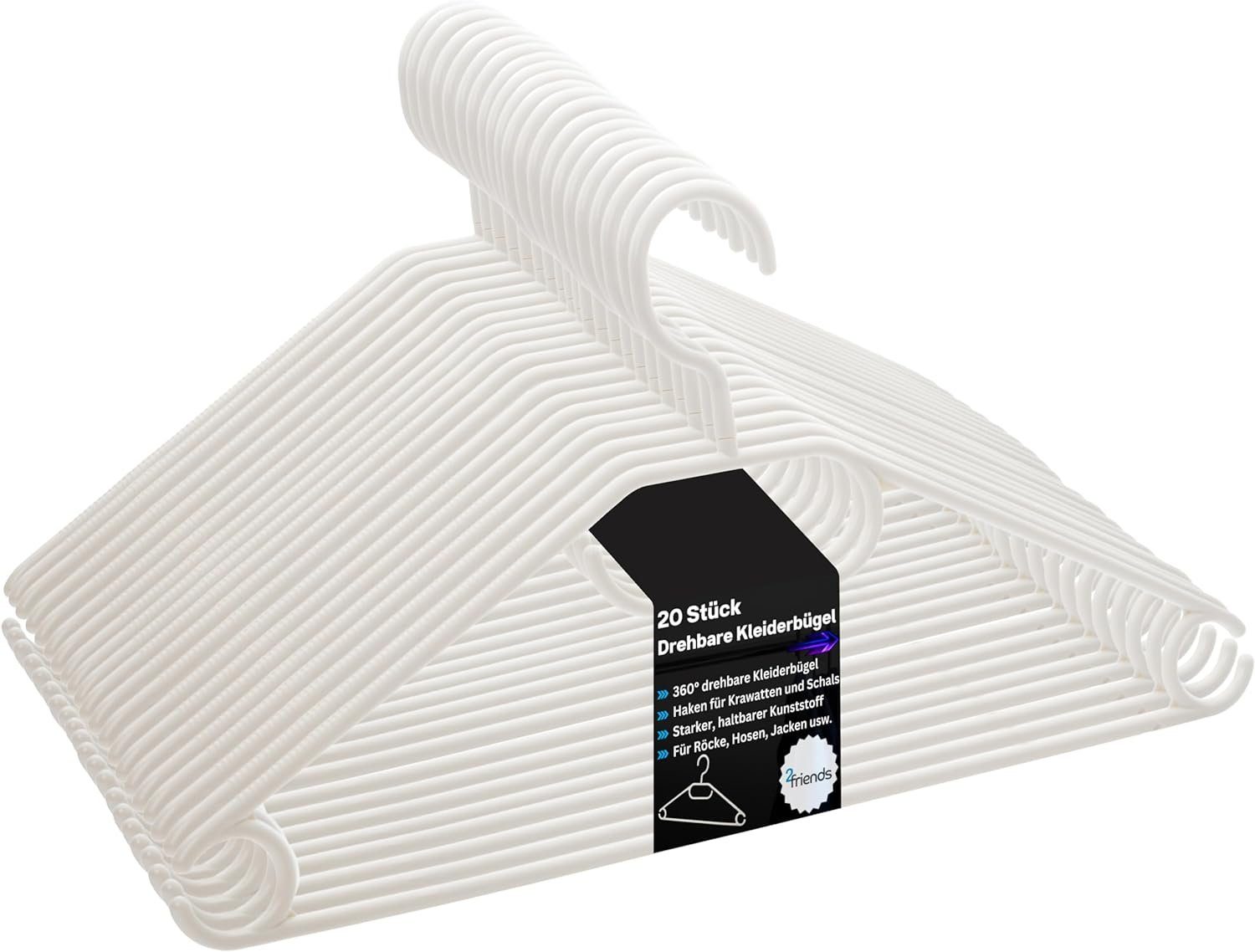 360° Drehbarer Haken: Die kleiderbügel weiß kunststoff mit komplett drehbarem Haken bieten maximale Flexibilität beim Aufhängen und Entnehmen der Kleidung.