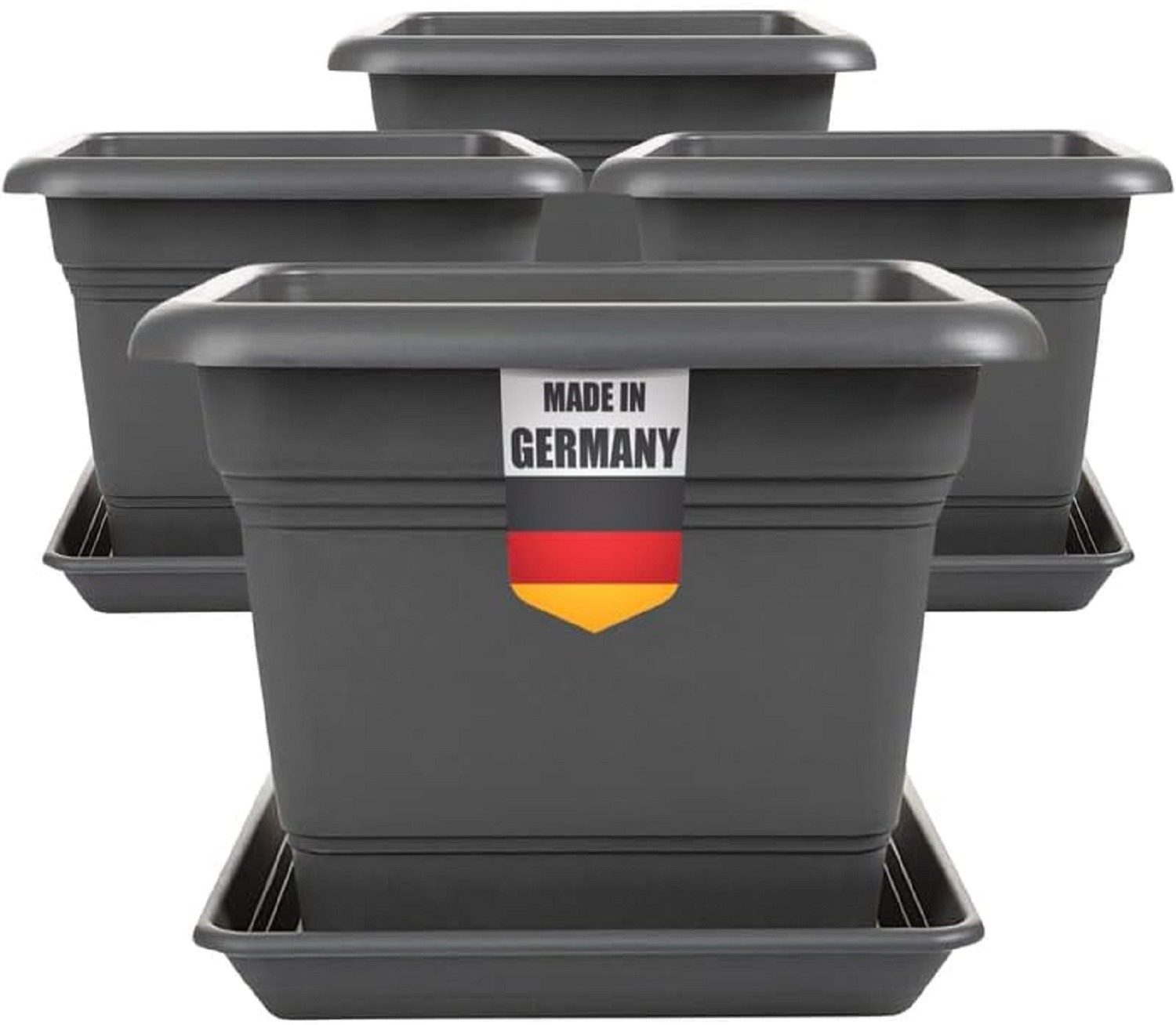 Lieferumfang: 4 Blumenkästen mit Untersetzer aus Kunststoff Anthrazit Maße 28T x 28B x 22H cm