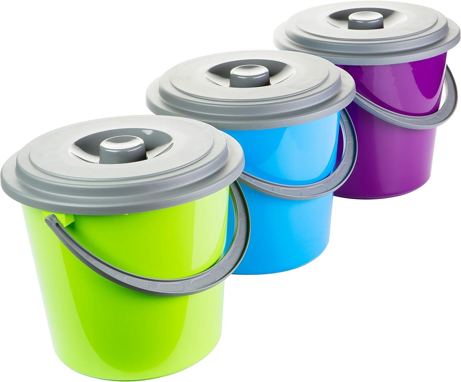 Lieferumfang | 3 10 Liter Eimer mit Deckel Grün, Violett, Blau |