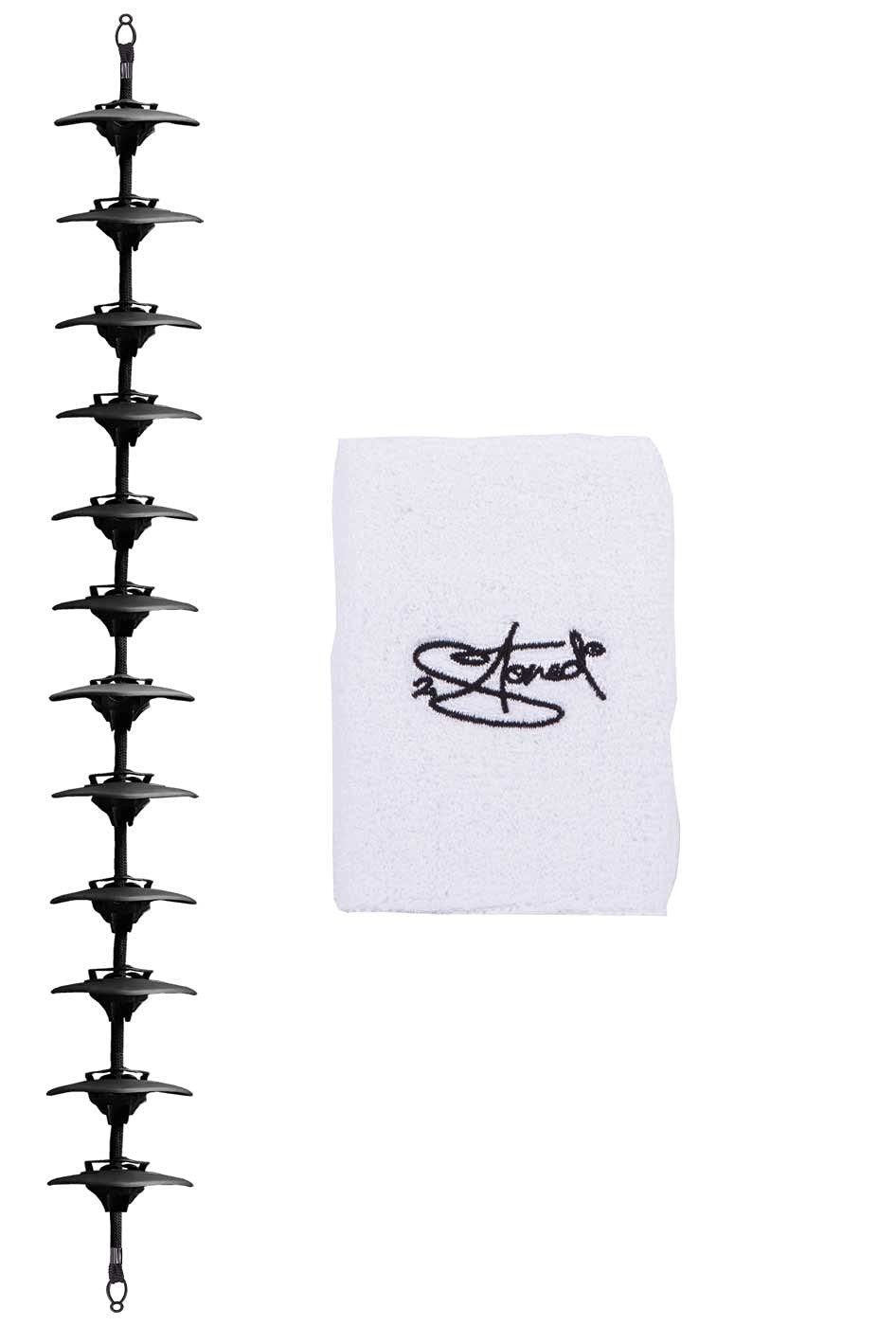 Das trendige Cap Rack XXL in Schwarz mit 12 Clips bietet bis zu 36 Baseballkappen, Schildkappen und Schirmmützen Platz. Das Caprack kann mit dem Halter an der Wand befestigt werden, oder mit dem Seil im Schrank aufgehängt werden. Auf einem Clip können bis zu 3 Baseball Caps, Truckercaps, Snap Backs befestigt werden. Der Abstand zwischen den einzelnen Clips ist individuell einstellbar. Das Caprack kann auch als Cap Presenter verwendet werden und wird inklusive Zubehör wie Wandhalter, Schrauben und Dübel geliefert. - Original "Cap Rack 36" von PerfectCurve mit Zugabe von 2Stoned - bietet Platz für die Aufbewahrung von bis zu 36 Caps und Mützen von Flexfit, 2Stoned etc. - Lieferumfang: Seil, 12 Clips, Wandhalter, Installationszubehör - kann an der Wand oder im Schrank aufgehängt werden - patentierte Clips haben abgerundete Kanten und Belüftungslöcher für eine gute Luftzirkulation - 3 Baseball Kappen pro Clip möglich - Abstand zwischen den Clips kann individuell eingestellt werden - Ausführung: PerfectCurve Cap Rack 36 - Farbe: Schwarz - Anzahl der Clips/Halter: 12 - Erweiterbarkeit durch zusätzliche Clips - Kappenhalter für Caps für Damen, Herren und Kinder