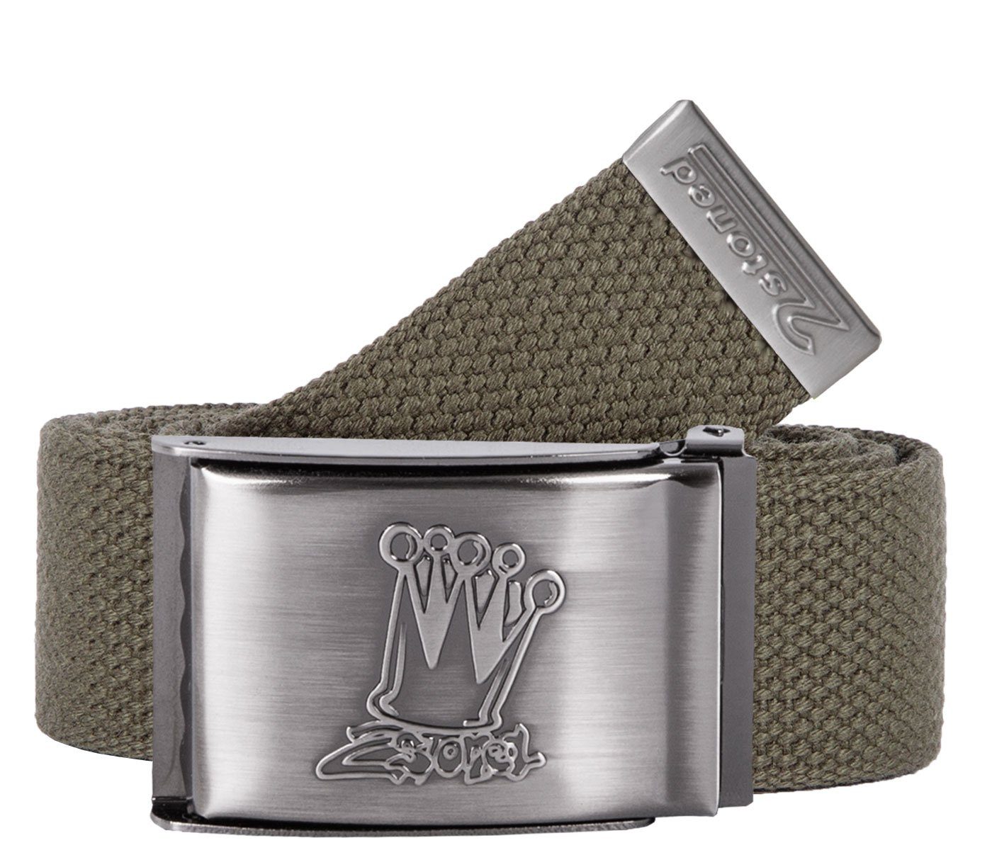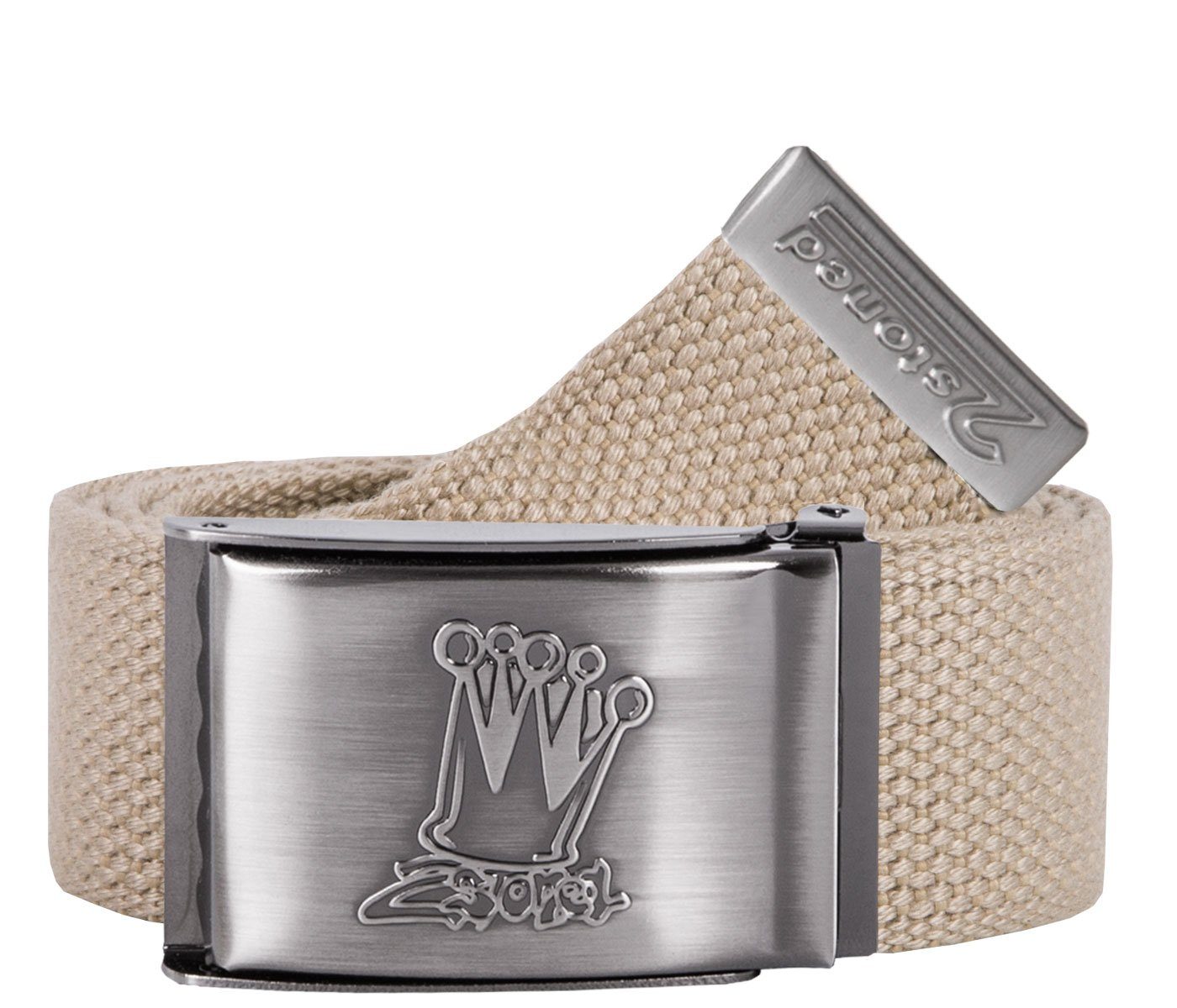 Original 2Stoned Stoffgürtel Canvas Belt Einfarbig aus Polyester im Cotton Look ca. 120 cm lang und ca. 4 cm breit mit matt gebürsteter Schnalle mit Klappverschluss und geprägtem Logo "Crown". Dieser Textilgürtel ist individuell kürzbar. - Original 2Stoned Gürtel Canvas Belt Crown - stufenlos verstellbarer Hosengürtel - individuell kürzbar (bitte Bild mit Anleitung beachten) - Canvas Gürtel für Damen, Herren und Kinder - matt gebürstete Metallschnalle mit Klappverschluss - Schnalle: 2Stoned Logo "Crown" auf Gürtelschnalle matt geprägt - Gürtelendstück aus Metall mit 2Stoned Logo - Breite: ca. 4 cm - Длина: ca. 120 cm - Material: Polyester Cotton Look - Muster: Einfarbig - Koppelgürtel für Jeanshosen - Hersteller: 2-stoned Wear - Jeansgürtel für Männer, Frauen, Mädchen und Jungen Bitte die Gürtelschnalle immer komplett aufklappen, damit sich die Zacken nicht im Gürtel verhaken und Fäden ziehen. Gürtelschnalle und Endstück sind aus Metall und können bei Nässe rosten.