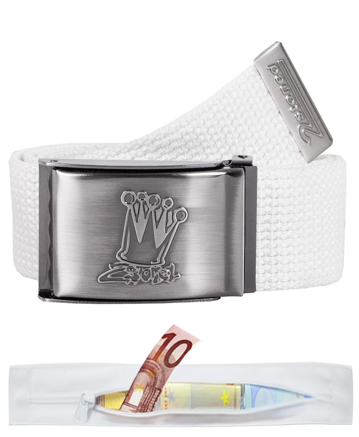 Original 2Stoned Tresorgürtel Canvas Secret Belt Einfarbig oder Mehrfarbig in 13 Farben/Farbkombinationen für Damen und Herren ca. 120 cm lang und ca. 4 cm breit mit matt gebürsteter Schnallen mit Klappverschluss und geprägtem 2Stoned Logo Crown. Dieser Stoffgürtel mit Geheimfach und Reißverschluss auf der Gürtelinnenseite kann um ca. 15 cm verstellt werden. - Original 2Stoned Tresorgürtel Canvas Secret Belt - Reisegürtel Safe Belt mit Geldfach / Geheimfach mit Reißverschluss für Bargeld auf der Innenseite - um 15 cm verstellbarer Koppelgürtel - Geldgürtel Money Belt für Damen, Herren und Kinder - matt gebürstete Metallschnalle mit Klappverschluss - Schnalle: 2Stoned Schriftzug "Classic Logo" auf Gürtelschnalle geprägt - Gürtelendstück aus Metall mit 2Stoned Logo - Breite: ca. 4 cm - Длина: ca. 120 cm - Größe: One Size - Material: Polyester im Cotton Look - 13 Farben und Farbkombinationen - Muster: Einfarbig oder Mehrfarbig gestreift - Hauptfarben: Schwarz, Weiß, Blau, Grau, Braun, Grün, Gelb, Rosa, Beige - Herrengeldgürtel und Damengeldgürtel für Jeanshosen - Hersteller: 2-stoned Wear (Streetwear und Accessoires) - Tresorgürtel für Männer, Frauen, Jungen und Mädchen