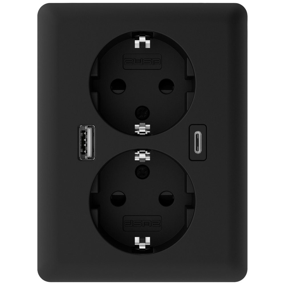 Die einzige USB-Doppelsteckdose mit USB-A und USB-C® Anschluss. Einbautiefe nur 10 mm, die Installation ist dadurch besonders komfortabel