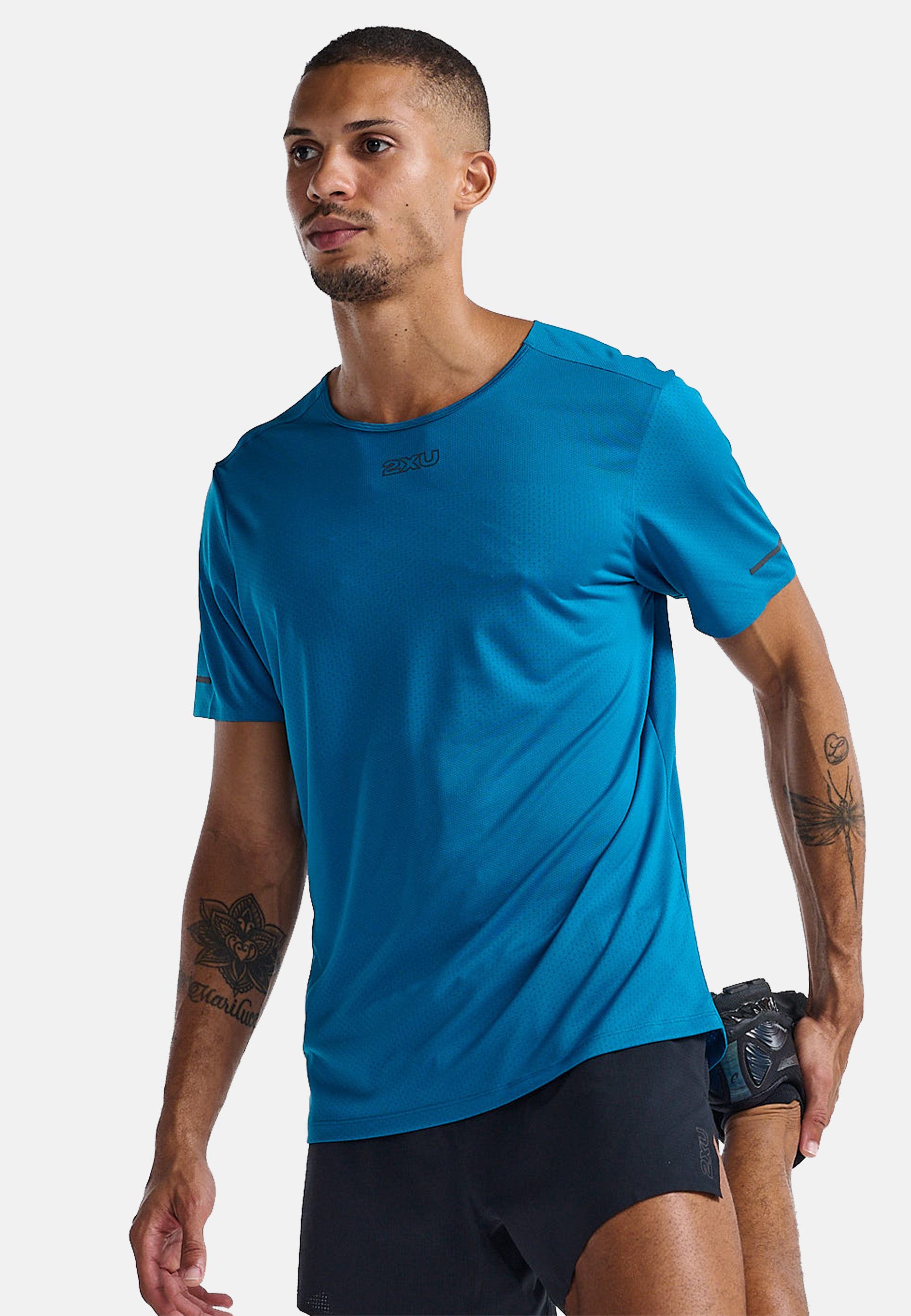 Das Laufshirt Light Speed Tech Tee von 2XU ist das ideale Shirt für Läuferinnen und Läufer, die Wert auf Funktionalität und Komfort legen. Hergestellt aus einem ultra leichten Feuchtigkeits ableitenden Stoff, sorgt das Shirt für ein angenehmes Tragegefühl während intensiven Workouts. Die strategisch platzierten Belüftungszonen im oberen Brust- und Rückenbereich halten dich kühl, auch bei heißem Sommerwetter. Mit reflektierenden Elementen auf Schultern, oberem Rücken und Saum bist du auch bei schlechten Lichtverhältnissen gut sichtbar und sicher unterwegs. Die kurzen Ärmel bieten Bewegungsfreiheit und die elastische Materialkonstruktion sorgt für eine optimale Passform. Der stabile 4-Wege-Stretch ermöglicht uneingeschränkte Bewegungen, während das Shirt schnell trocknet und Feuchtigkeit effektiv reguliert. Die glatten, verklebten Nähte in Schlüsselbereichen verhindern Reibung und reduzieren den aerodynamischen Widerstand. Mit dem Light Speed Tech Tee von 2XU bist du bestens ausgestattet für deine Laufeinheiten und erreichst Bestleistungen!