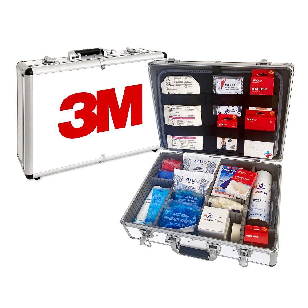 Der 3M Sofort-Hilfe-Koffer "Senior" besteht aus einem verstärktem Alu-Rahmen und ist äußerst robust. Dank der erstklassigen Verbandsstoffe, wie u.a. Kalt-Warmkompressen, Tapes, Wundverbände, bietet der Sanitätskoffer, alles was zur Erstversorgung nötigt ist. Die funktionale Innenaufteilung des 3M Sofort-Hilfe-Koffers "Senior" ermöglicht eine geringe Variabilität bei den Einteilungsfächern - so finden zusätzlich noch Pflaster oder Desinfektionsspray Platz.