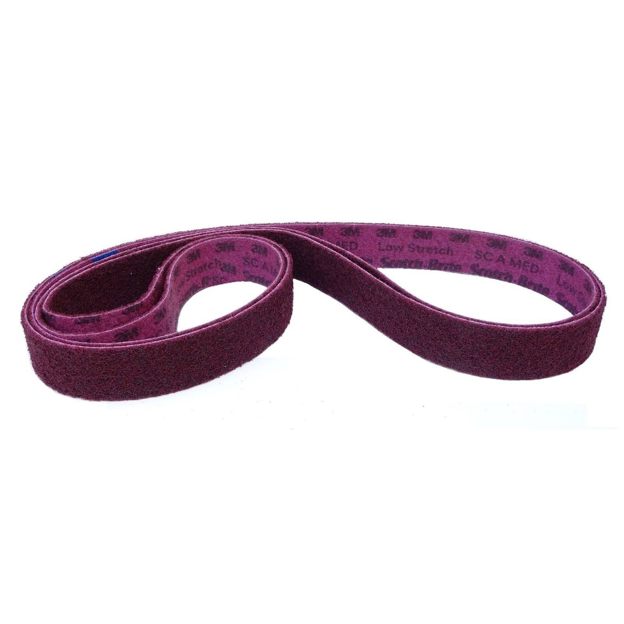 Die dehnungsarmen Scotch-Brite Schleifbänder zur Oberflächenbearbeitung bestehen aus Aluminiumoxid- und Siliciumcarbid-Mineralien. Sie sind in verschiedenen Kombinationen erhältlich, darunter Aluminiumoxid mittel (A MED), Aluminiumoxid sehr fein (A VFN), Aluminiumoxid grob (A CRS), Siliciumcarbid mittel (S MED), Siliciumcarbid superfein (S SFN) und Siliciumcarbid sehr fein (S VFN).