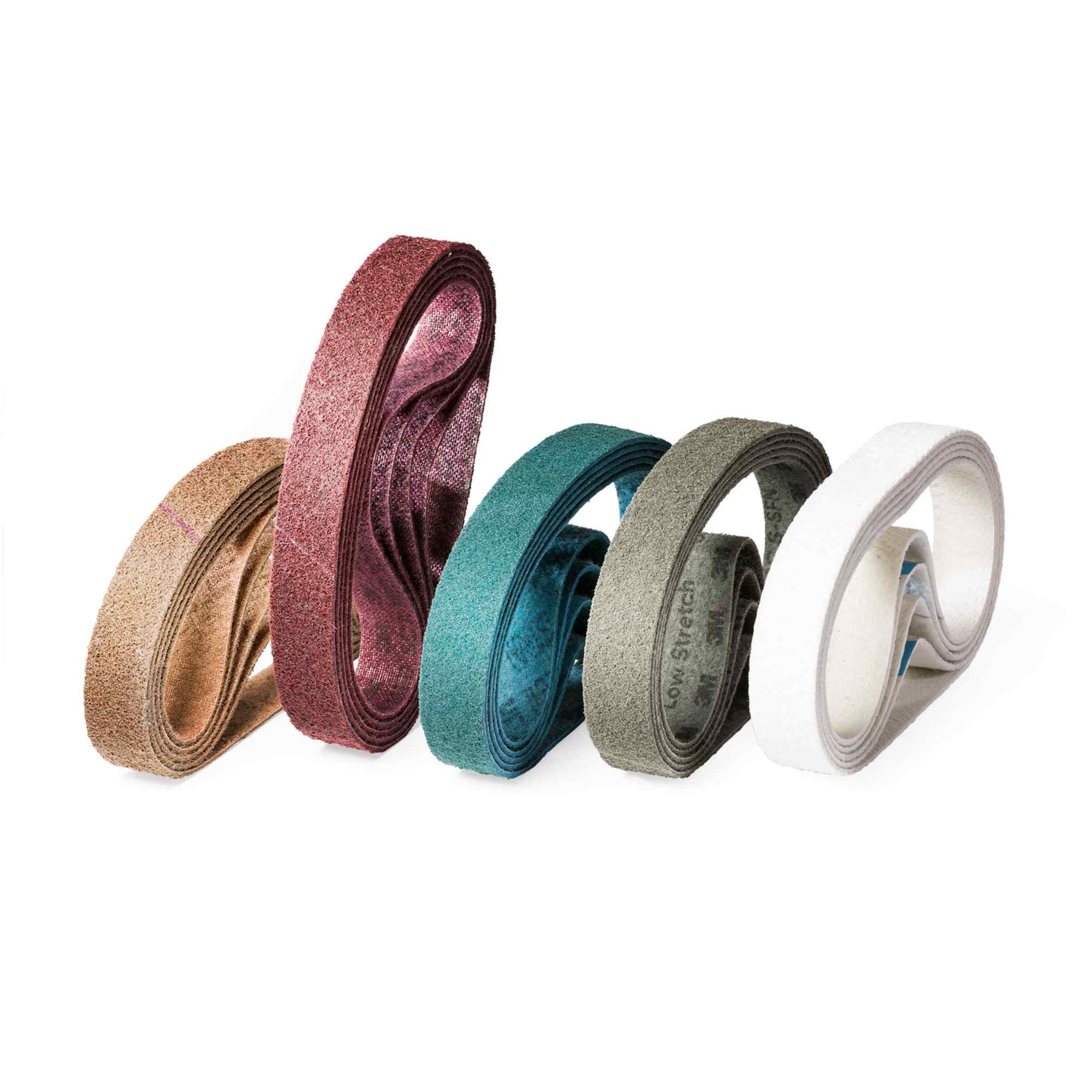 Diese Vliesbänder sind besonders für den Trockenschliff geeignet, da sie über ein eingebautes Schmiermittel verfügen. Sie können jedoch auch problemlos mit anderen gängigen Schleifzusätzen verwendet werden.