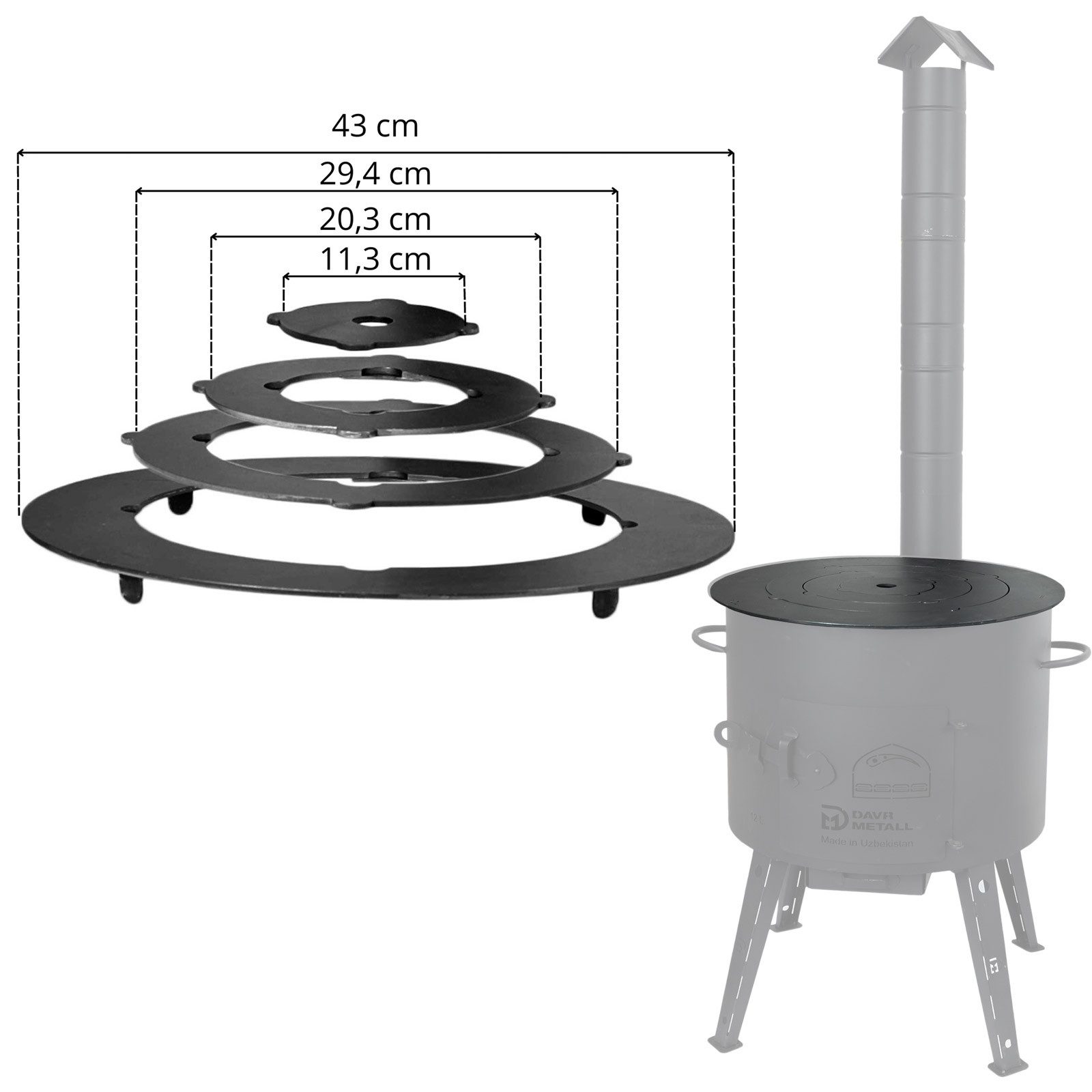 Diese Adapter-Ringe sind ideal für die meisten Eintopfofen / Utschags mit einem Durchmesser von 38 cm bis 42 cm geeignet (Uchag für 12-Liter-Kazan).