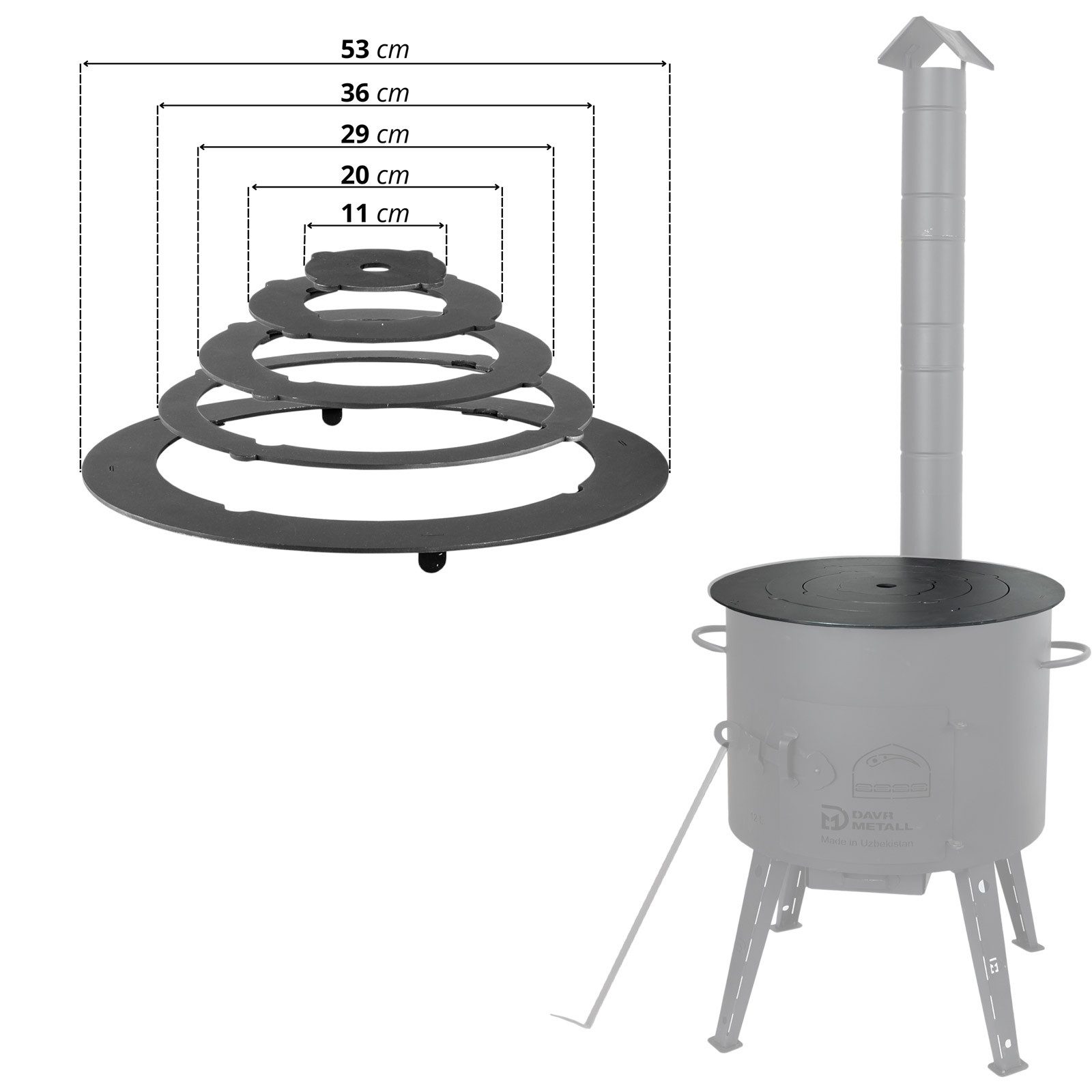 Diese Adapter-Ringe sind ideal für die meisten Eintopfofen / Utschags mit einem Durchmesser von 48 cm bis 52 cm geeignet (Uchag für 22-Liter-Kazan).