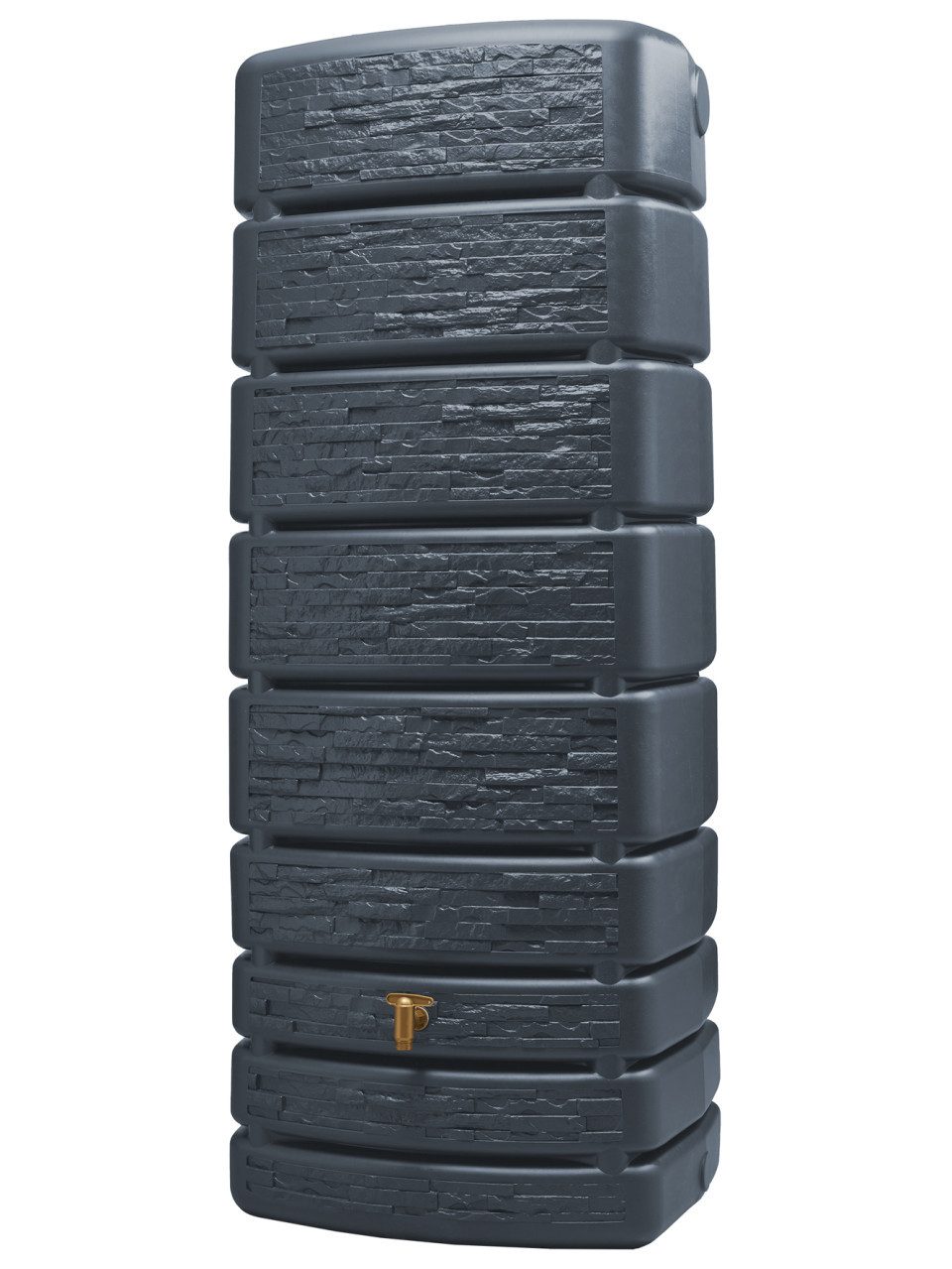 Produktdetails: Material: 100% Recyclingmaterial (PP) | Farbe: Stonedecor, grau | Maße: 75 x 184 x 51 cm (B x H x T) | Füllvolumen: 500 L | Gewicht: 25 kg | Hohes Speichervolumen bei geringem Platzbedarf | Mit zwei Gewindeanschlüssen 19 mm (3/4") zur Wasserentnahme: Für den Auslaufhahn und das Universal-Schlauchset (Zubehör) oder einfach zur Restentleerung vor der Frostperiode | Inkl. Windsicherung, Kunststoff-Auslaufhahn Aqua-Quick |