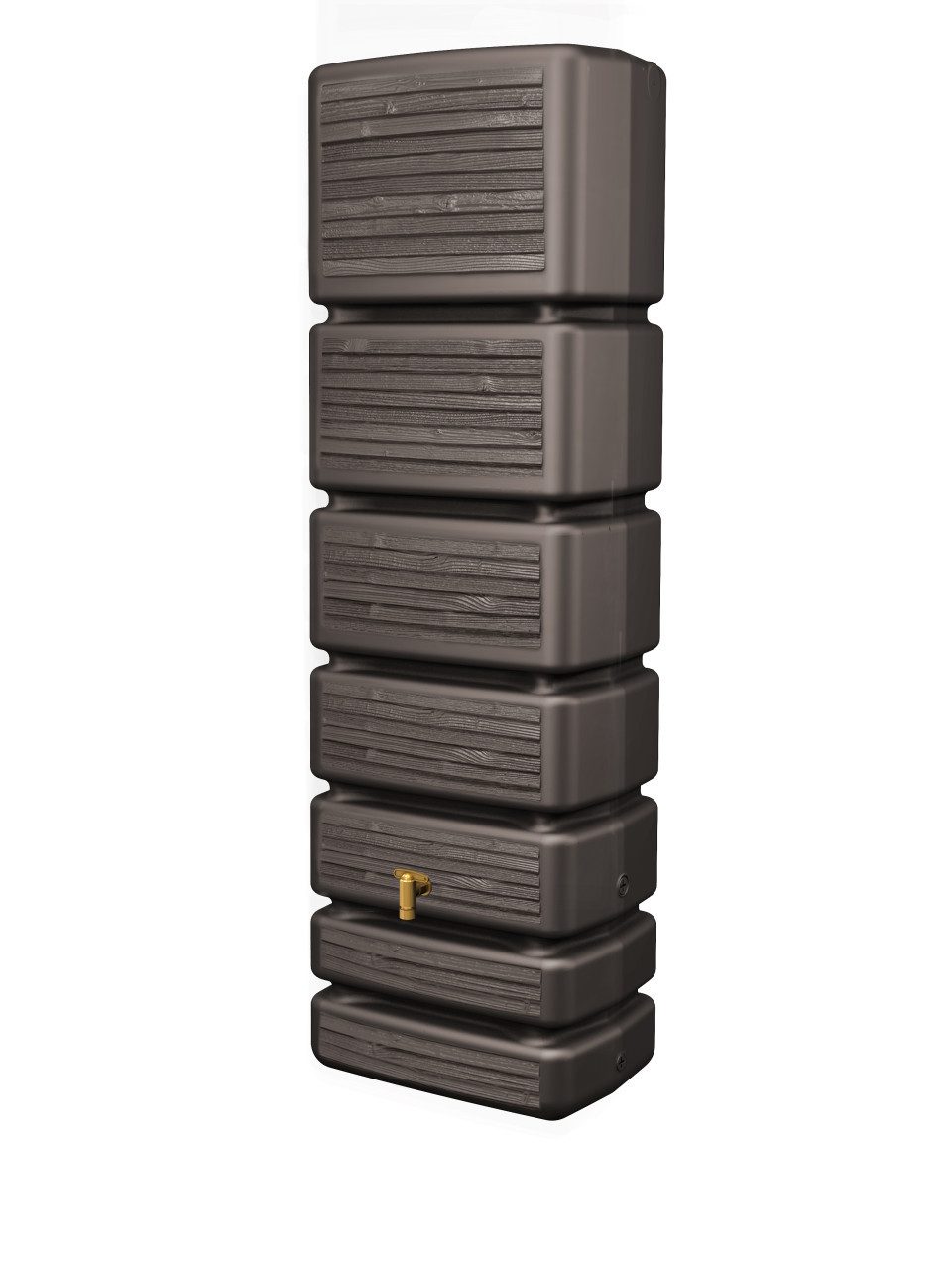 4rain Slim Wood Decor Wandtank darkwood - die neue Generation. Der stilvolle Regenwasserbehälter überzeugt mit seiner trendigen Holzdekor-Front und der naturgetreuen Farbgebung in dunkelbraun. Entscheidungen zwischen Eleganz und Funktionalität gehören dank dieser Regentonne der Vergangenheit an. Entdecken Sie den Charakter natürlicher Holzoptikelemente, gepaart mit der Raffinesse einer klaren Linienführung. Der schlanke Tank zur Aufstellung an der Hauswand, bietet Ihnen ein Speichervolumen von 350 Litern bei geringem Platzbedarf. Entscheiden Sie sich für eine Эко-товарe Gartenbewässerung, schonen Sie wertvolle Ressourcen und vor allem Ihren Geldbeutel. Sammeln Sie ab sofort Regenwasser, das ohnehin kostenlos vom Himmel fällt. Der Behälter verfügt über insgesamt fünf Gewindeanschlüsse 19 mm (3/4) zur Wasserentnahme (Front und Seiten), z. B. für die Montage des mitgelieferten Kunststoff-Auslaufhahns in Messingoptik, eines Schlauchsets (optionales Zubehör) oder zur Restentleerung vor der Frostperiode. Aufgrund der zahlreichen Auslaufgewinde kann man ihn auch seitlich in besonders schmalen Nischen unterbringen. Zusätzlich befindet sich auf der Oberseite der Regentonne eine Deckelöffnung mit einem Durchmesser von 18 Zentimetern. Besonders robust und langlebig - witterungsbeständige Materialien mit hohem UV-Schutz sorgen für eine lange Lebensdauer beim Einsatz im Freien. Bereits bei der Entwicklung eines 4rain Produkts wird sehr viel Wert auf ein nachhaltiges Produktdesign gelegt. Dieser Regenwasserbehälter wird aus Recyclingkunststoff hergestellt und ist zu 100 % recycelbar. Qualität Made in Germany. Hinweis: Behälter muss bei Frostgefahr im Winter vollständig entleert werden.