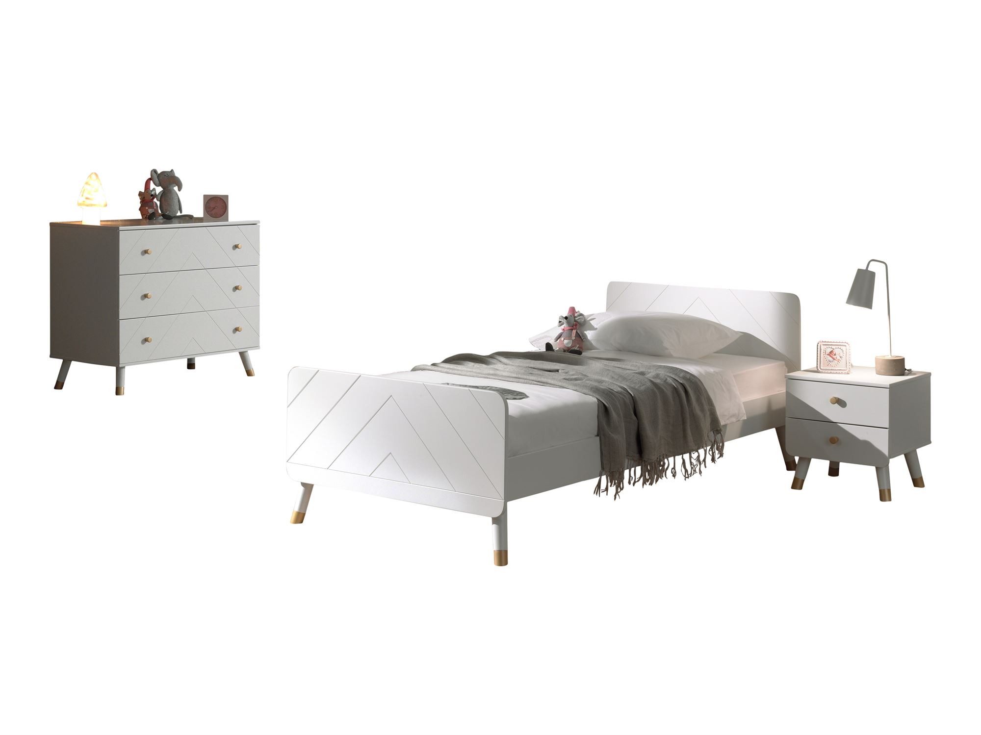Lieferumfang | Artikel Set aus der Serie Kamillah,Best aus: Bett 90 x 200 cm, Nachtkonsole und Schubladen Kommode,Komplett ausgestattet, das ideale Set für das Kinderzimmer,Die Rillenprofile geben eine besondere Optik,Schräg ausgestellte Füße in Retro-Optik |
