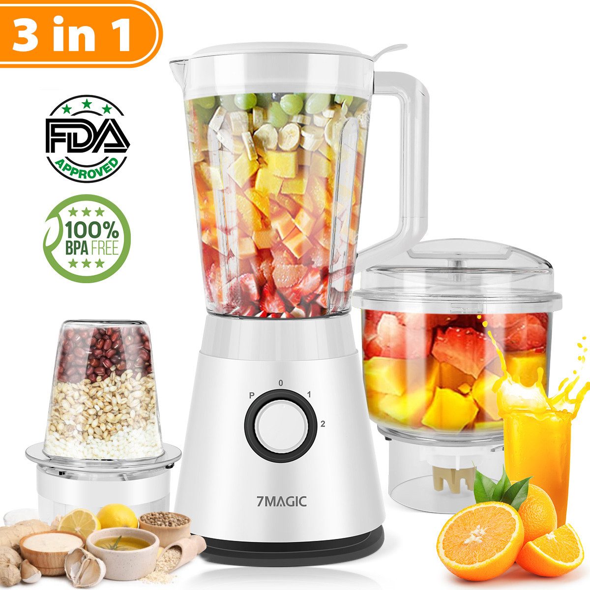 Top-Features | verstellbare Geschwindigkeit 350ml Zerkleinerer und 100ml Trockenmahlbecher Zerkleinern, Mischen, Mahlen - 3-in-1 |