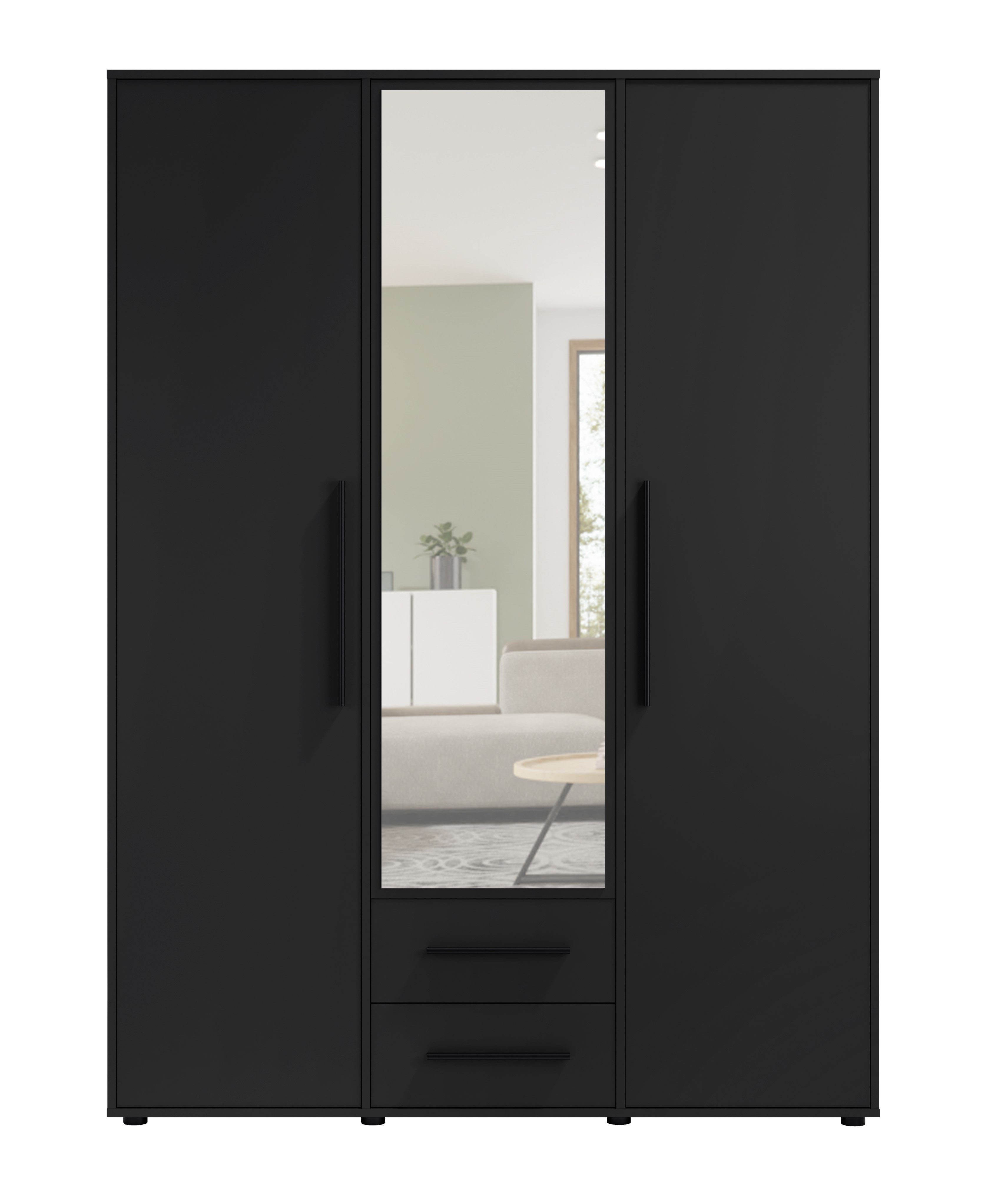 2 Schubladen, 6 Fächer, 5 Einlegeböden, 2 Kleiderstangen, mit 3 Türen