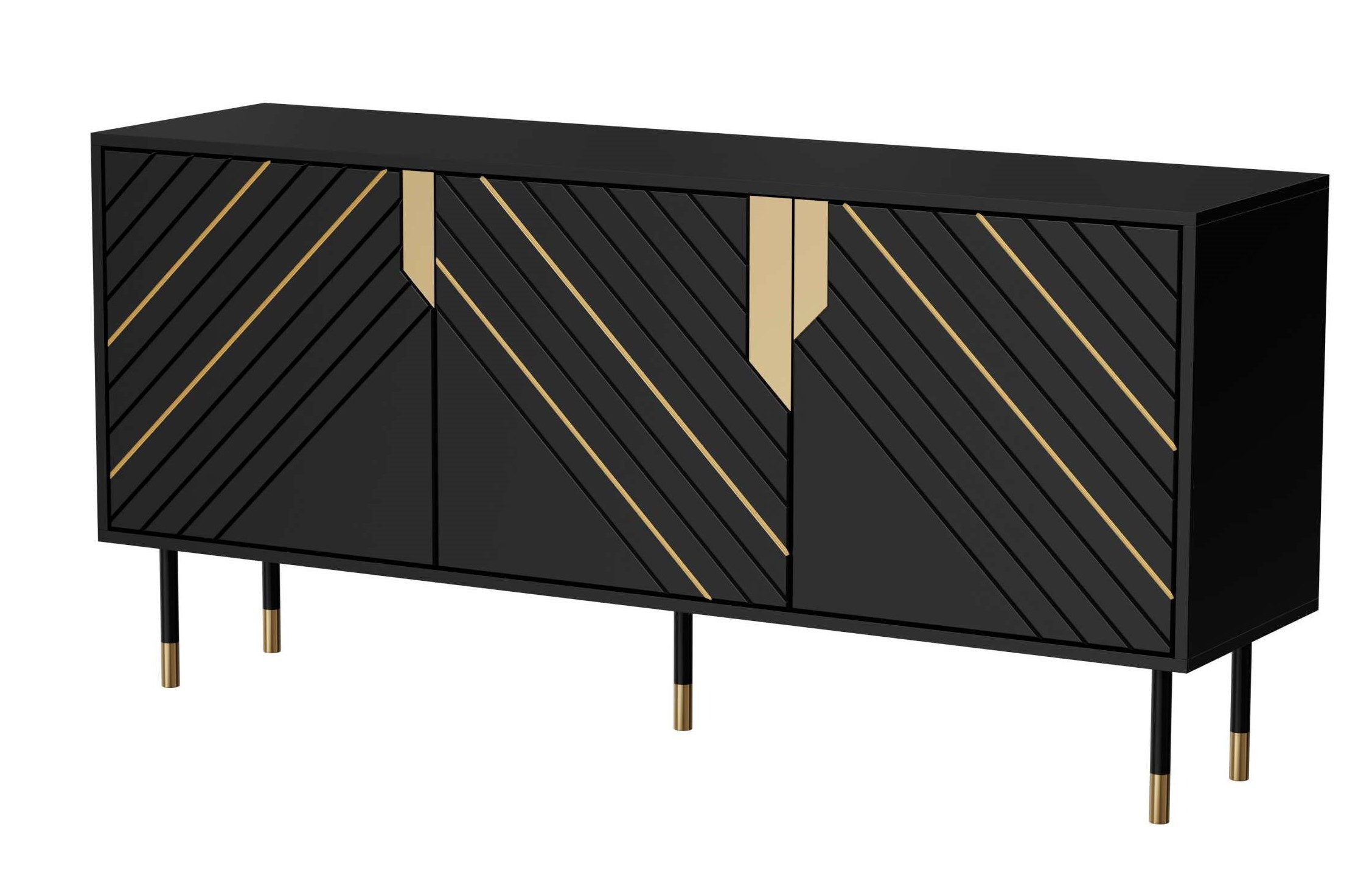 (Sideboard, Highboard), mit 3 grifflosen Türen, aus Holzwerkstoff, Metall Füße