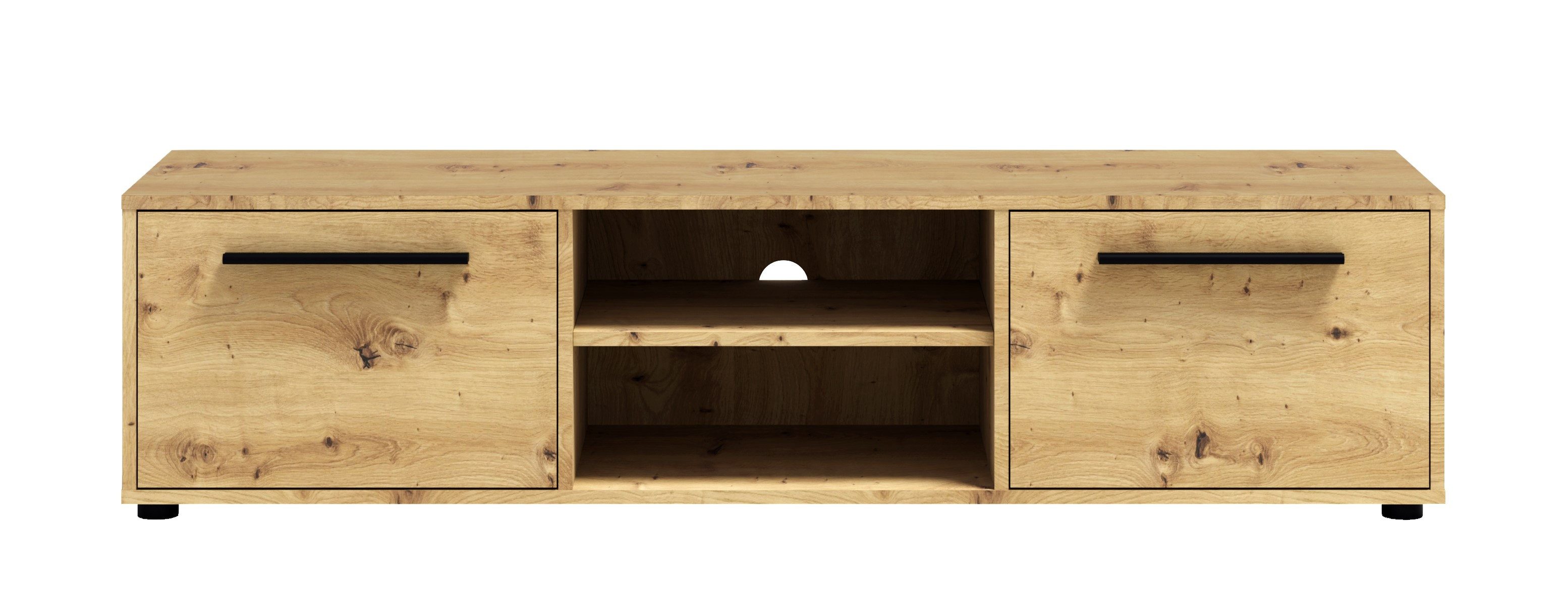 (TV-Kommode, TV-Schrank, Fernsehschrank), Stilvolles Design, mit 2 Klappen, 2 offene Fächer, 2 Fächer