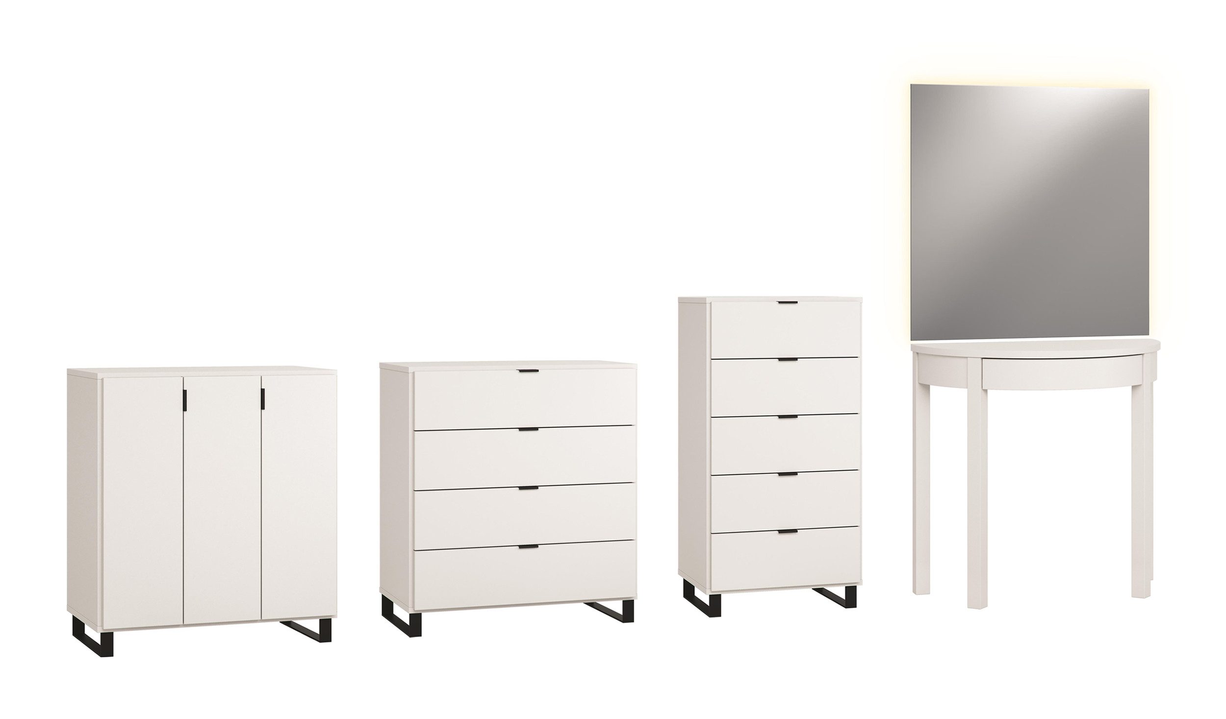 99rooms Schlafzimmer-Set Simplica I Weiß, (Set (4-St), Komplett Schlafzimmer), bestehend aus 3xKommode und 1xSchminktisch, mit Soft-Close, Metall