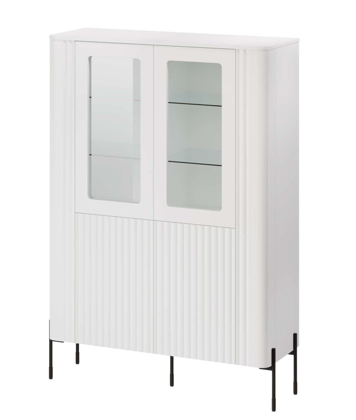 99rooms Vitrine Reva (Standvitrine, Wohnmöbel) mit Glastüren, aus Holzwerkstoff, schwarze Metallfüße