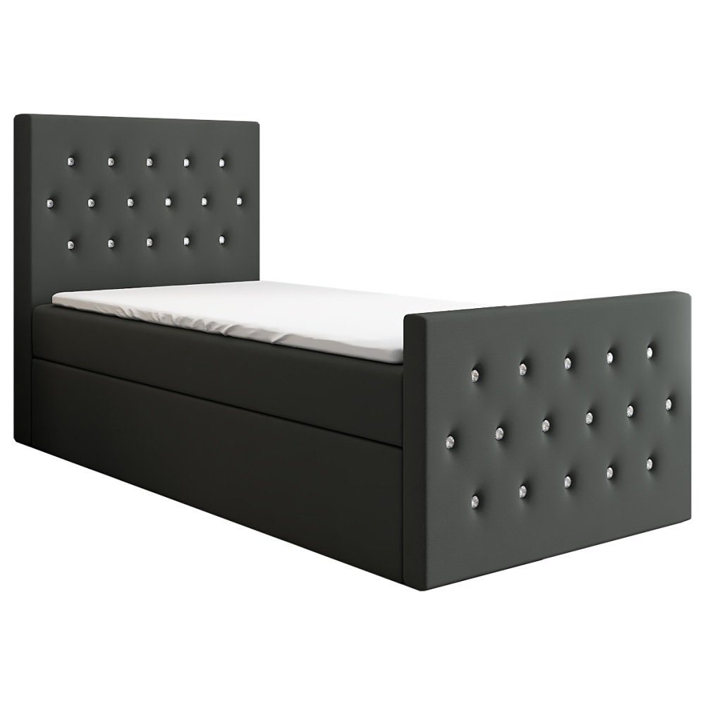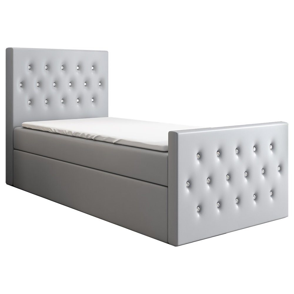 Elegantes Boxspringbett mit Bettkasten, Topper, und gepolstertem Kopfteil – erhältlich in verschiedenen Farben und Größen.