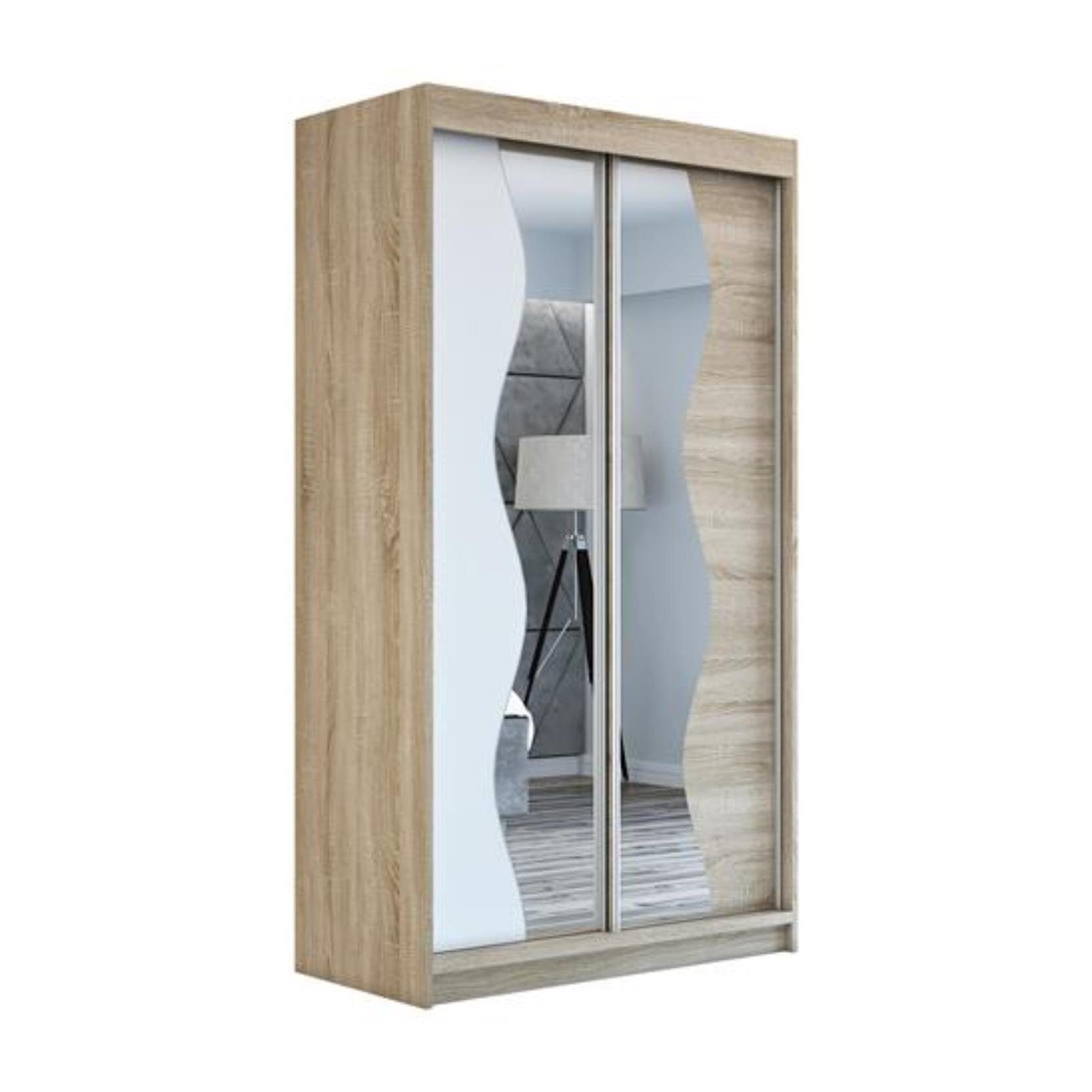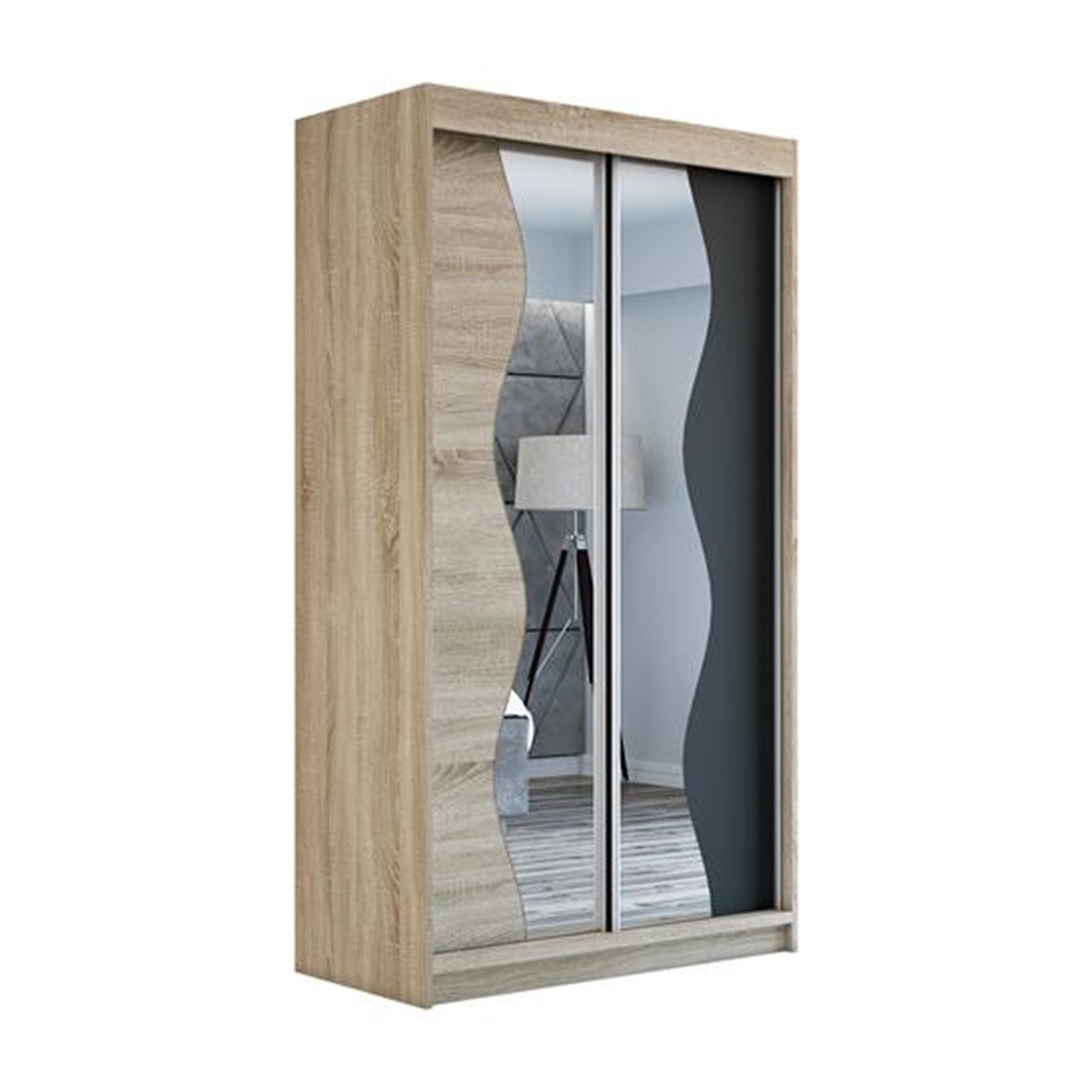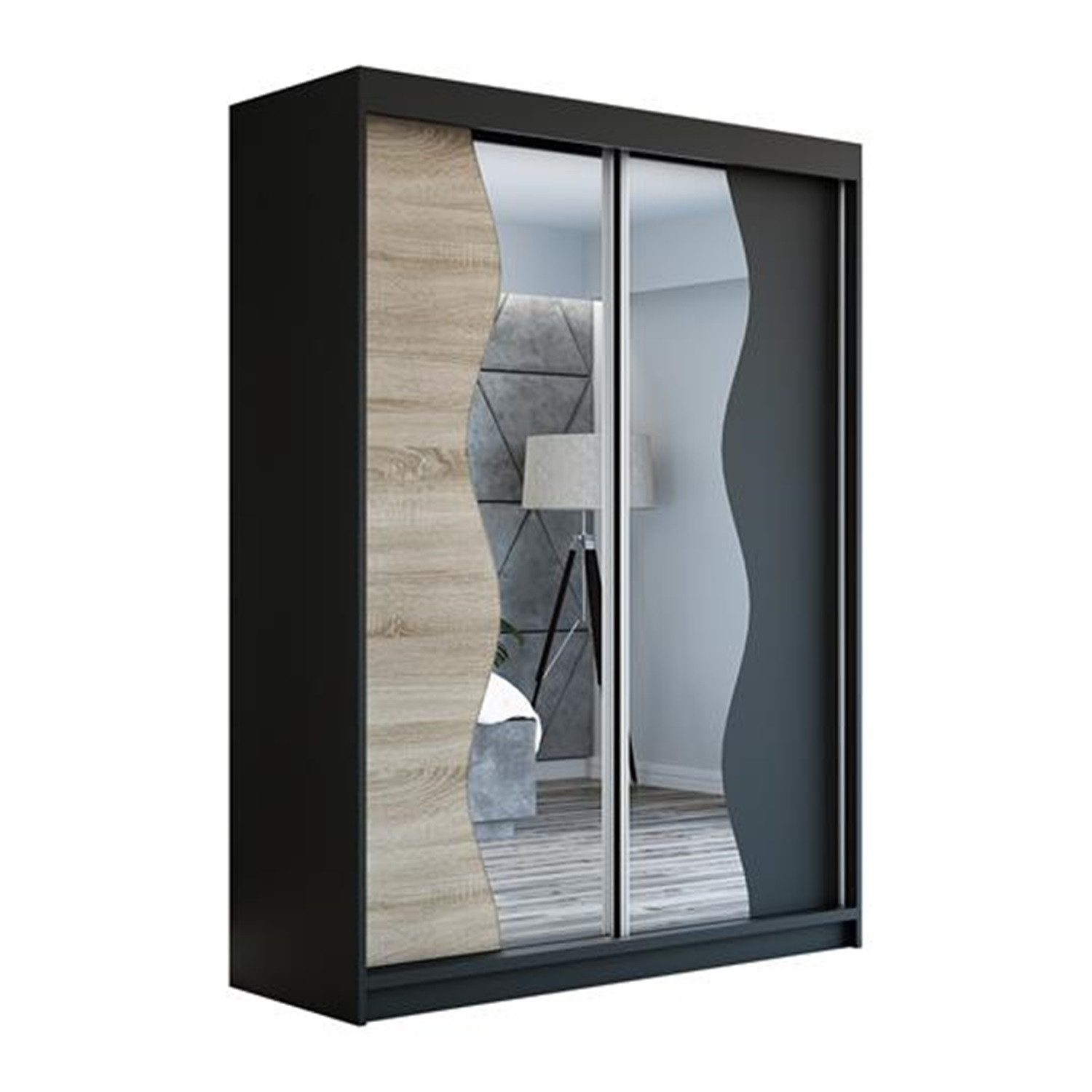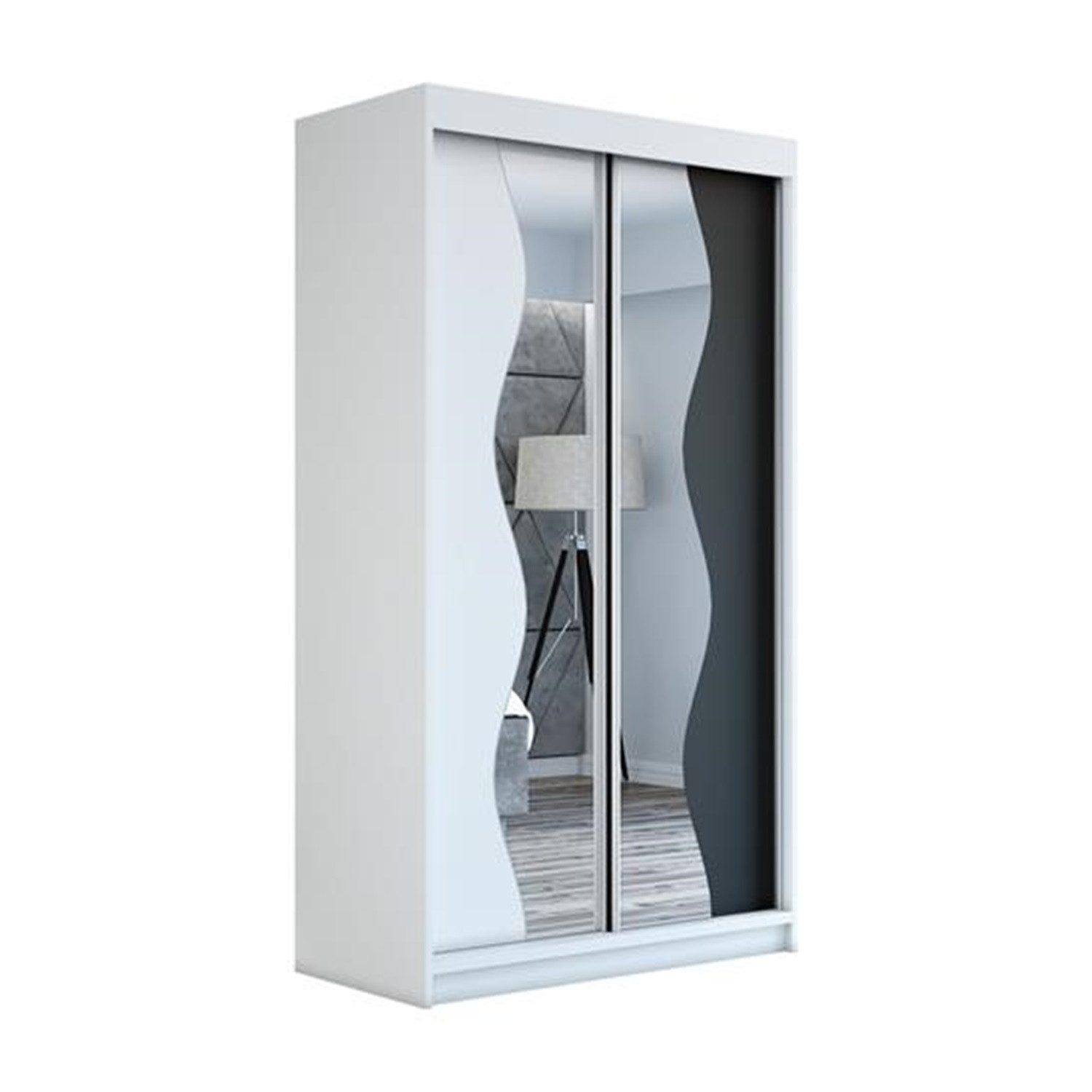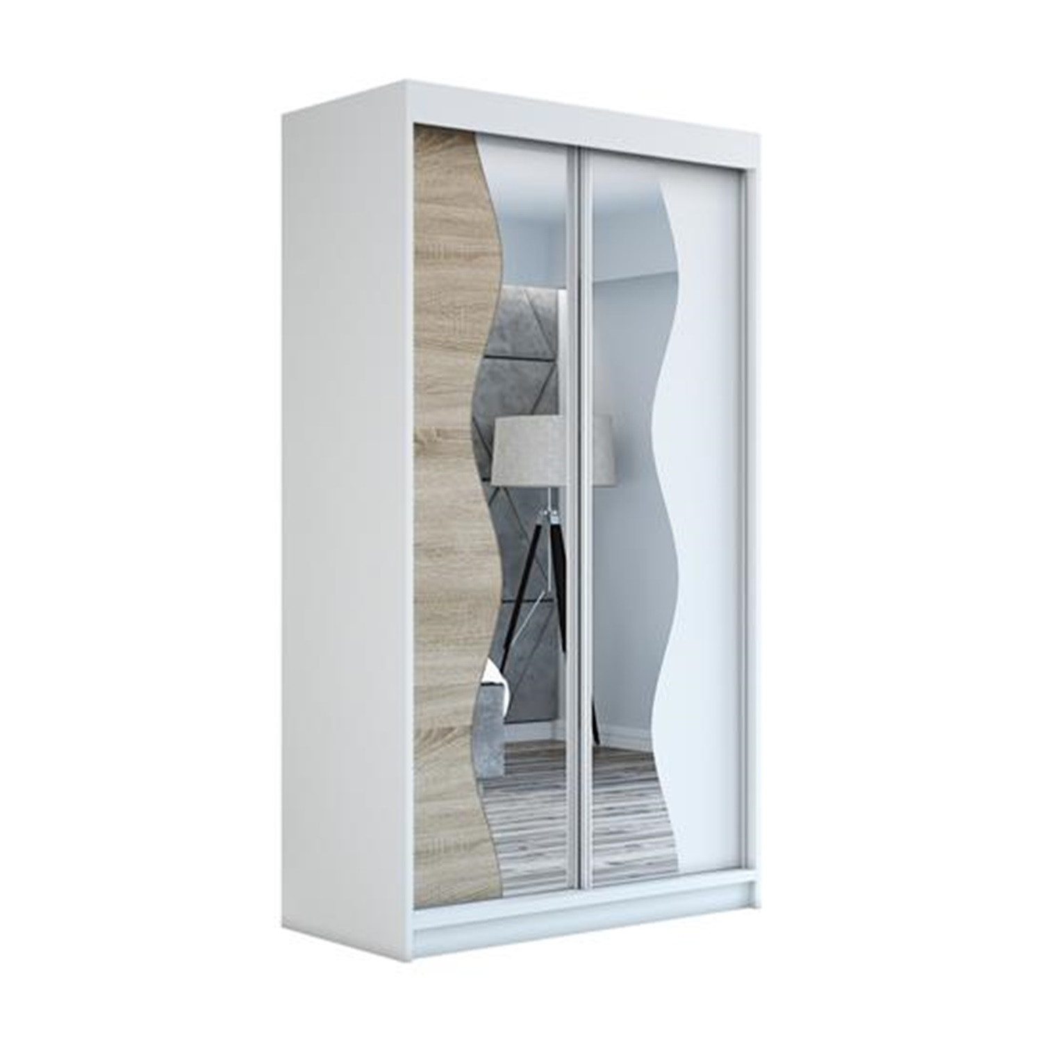 Der moderne 2-türige Kleiderschrank mit zwei Spiegeln ist die ideale Lösung für jedes Zuhause, das elegantes Design mit praktischer Funktionalität kombiniert. Der Schrank ist in drei verschiedenen Größen erhältlich (120 cm, 160 cm, 180 cm), sodass Sie das Modell auswählen können, das perfekt in Ihr Zimmer passt. Mit einer praktischen Kleiderstange und sechs Regalen bietet der Schrank ausreichend Platz für Ihre Kleidung und Accessoires. Die beiden Spiegel sorgen für praktische und stilvolle Ergänzungen, die den Raum optisch vergrößern.