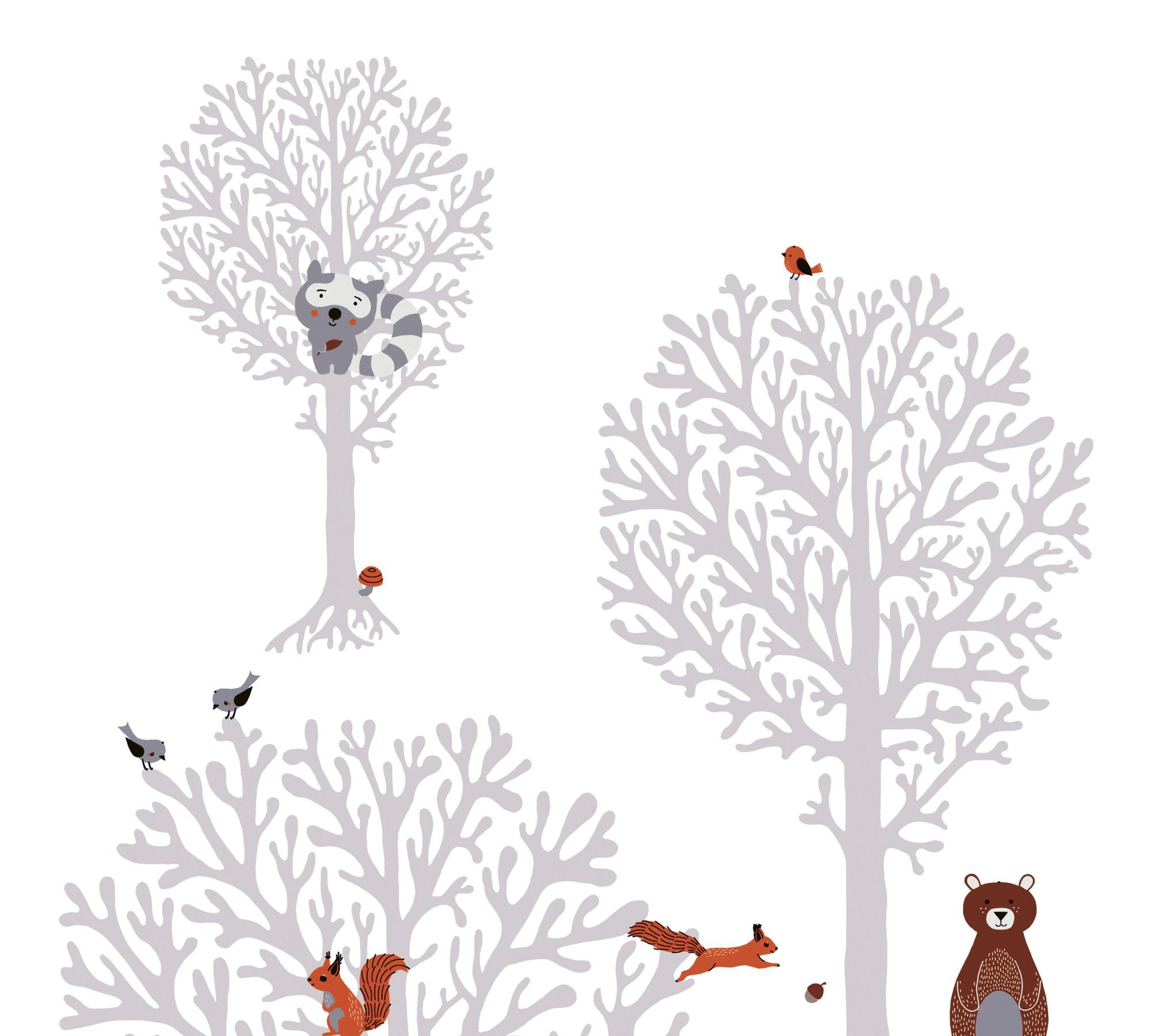 Art Muster | Waldtapete, Kinderzimmertapete, Waldtiere, Bär & Vogel |