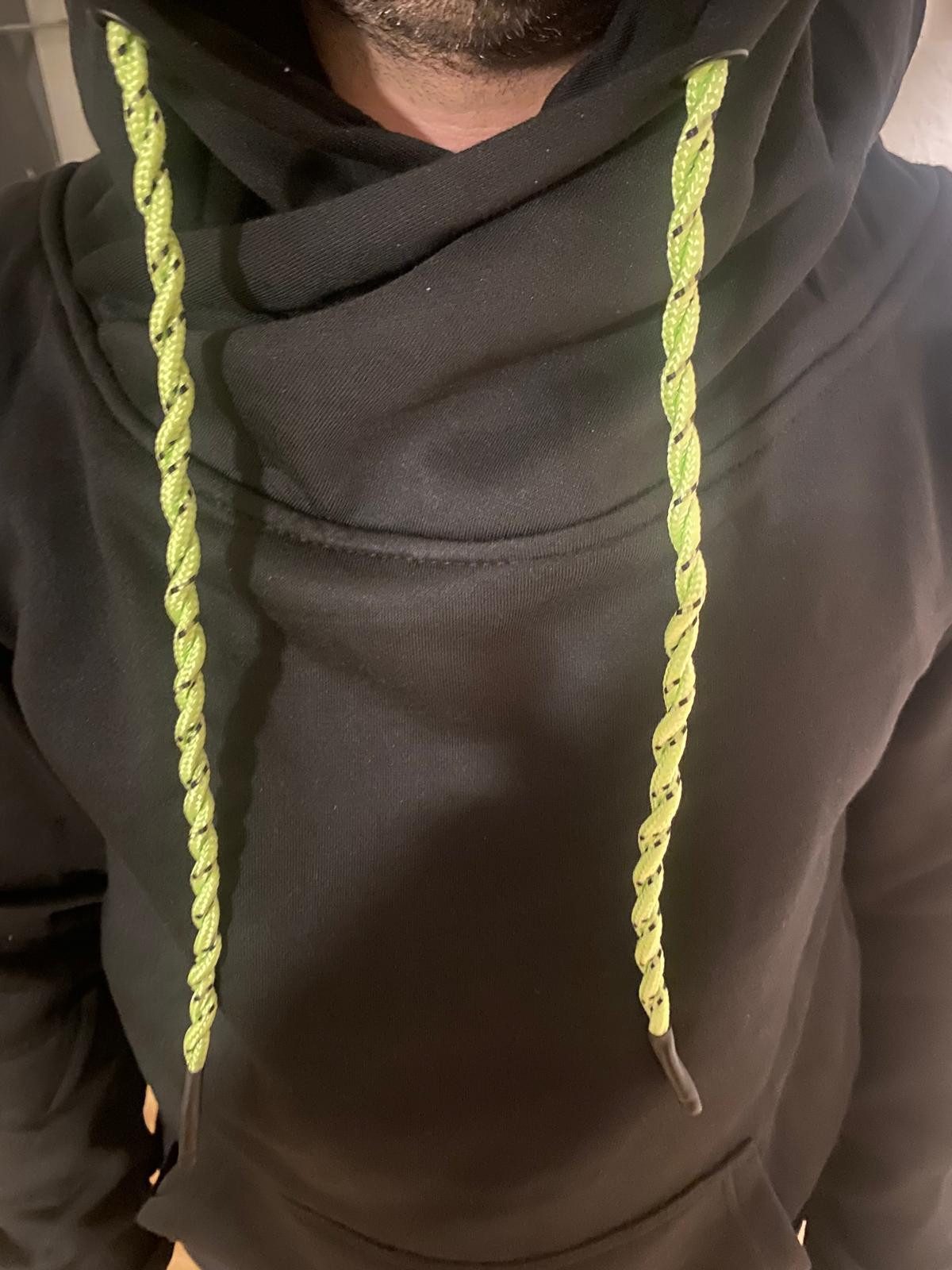 Fluoreszierende Paracord-Kordeln: Die hochwertigen Zugkordeln leuchten im Dunkeln und verleihen dem Hoodie ein stylisches und funktionales Extra.