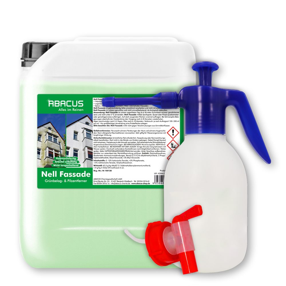 Set beinhaltet | 1x5L Nell Fassade – Algenentferner & Pilzentferner + 1,8L Sprühflasche |