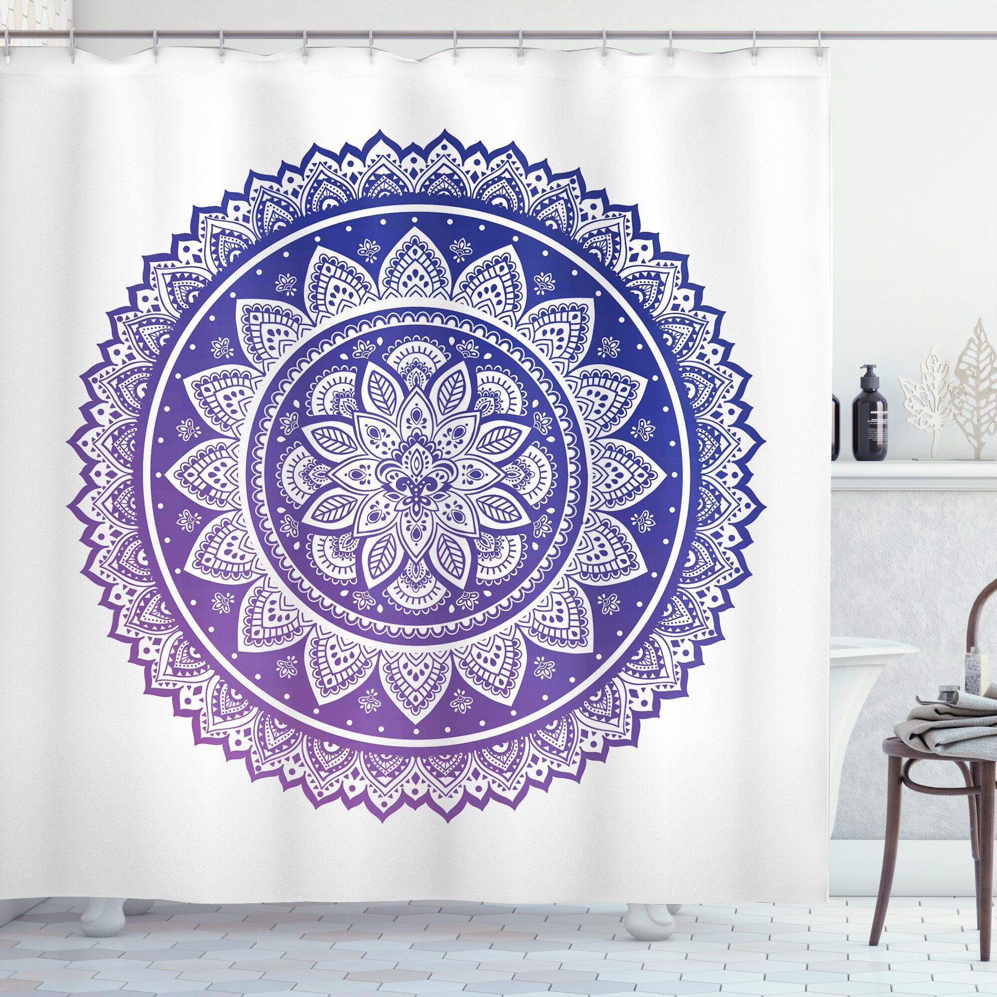Mir gefällt das Mandala-Muster und die Farben harmonieren sehr gut mit weißen und blauen Fliesen; das Material ist sehr gut und wasserabweisend aber dennoch waschbar