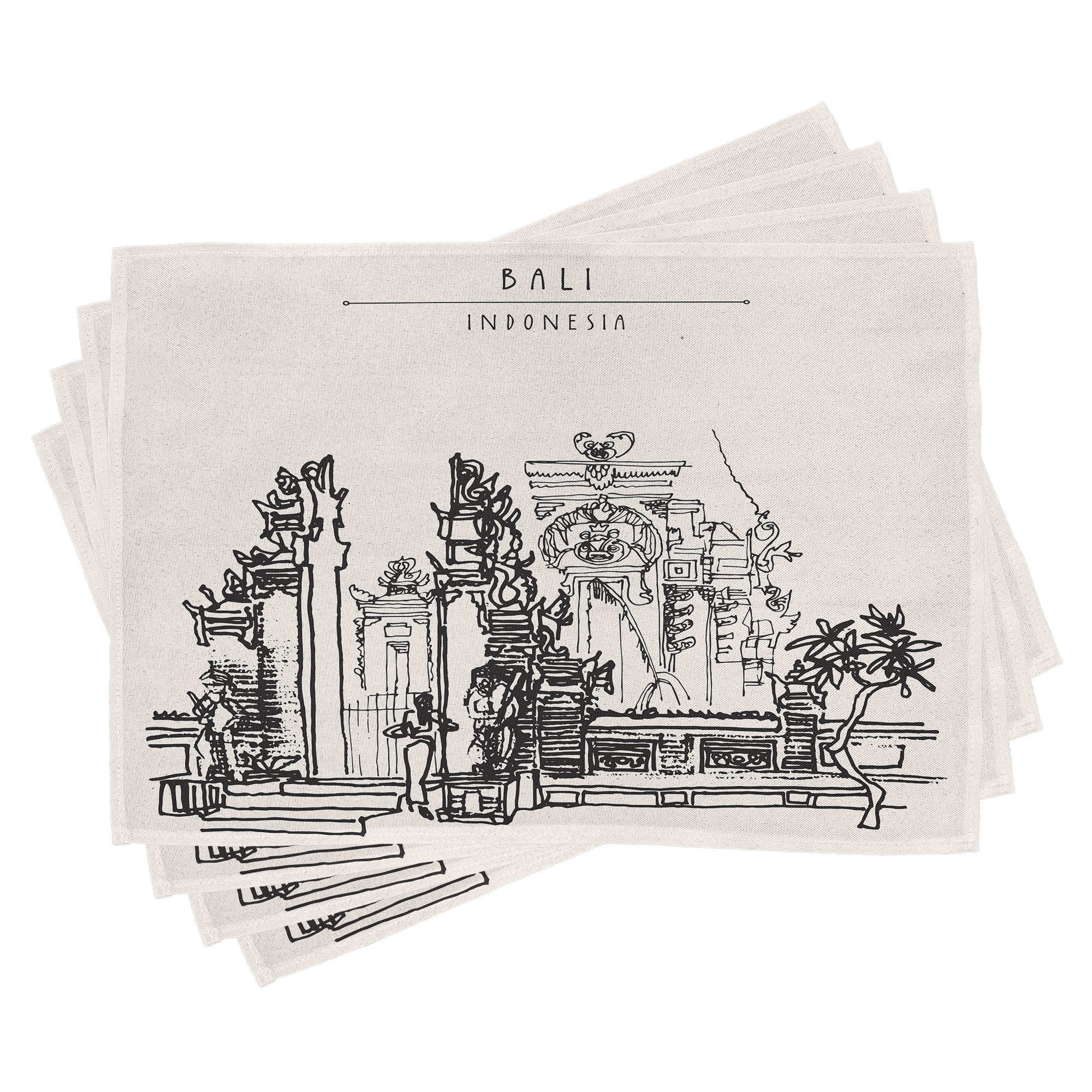 Ein vierteiliges Tischmattenset, je 30 cm lang und 45 cm breit. Mit handgenähten Kanten.