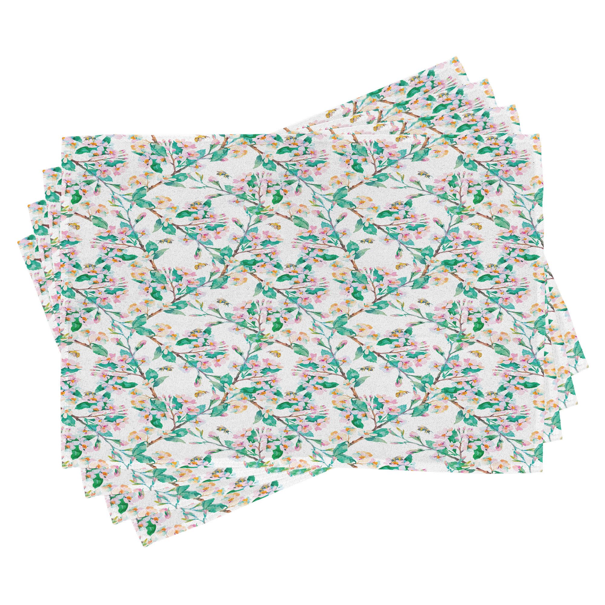 Ein vierteiliges Tischmattenset, je 30 cm lang und 45 cm breit. Mit handgenähten Kanten.