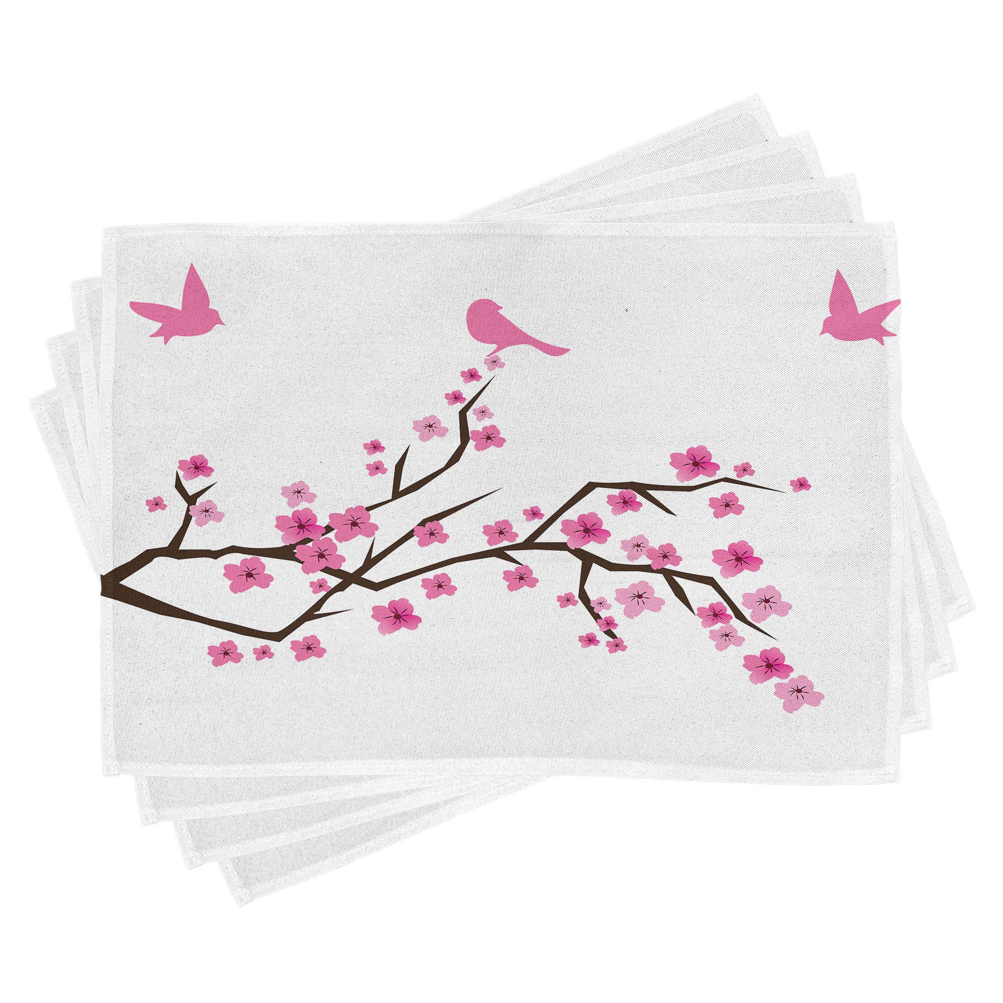 Ein vierteiliges Tischmattenset, je 30 cm lang und 45 cm breit. Mit handgenähten Kanten.