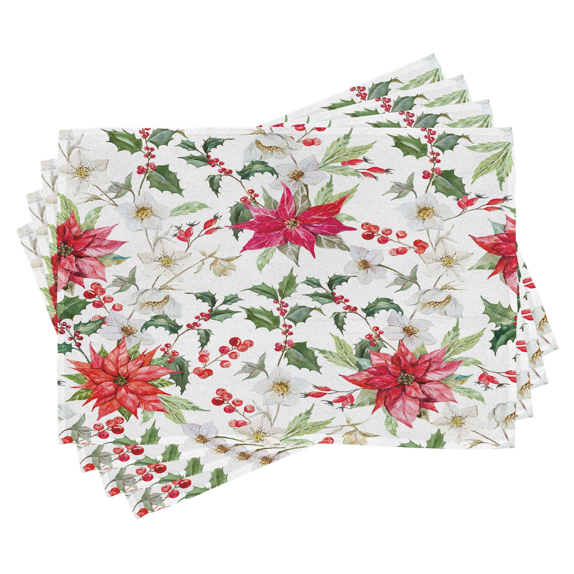 Ein vierteiliges Tischmattenset, je 30 cm lang und 45 cm breit. Mit handgenähten Kanten.