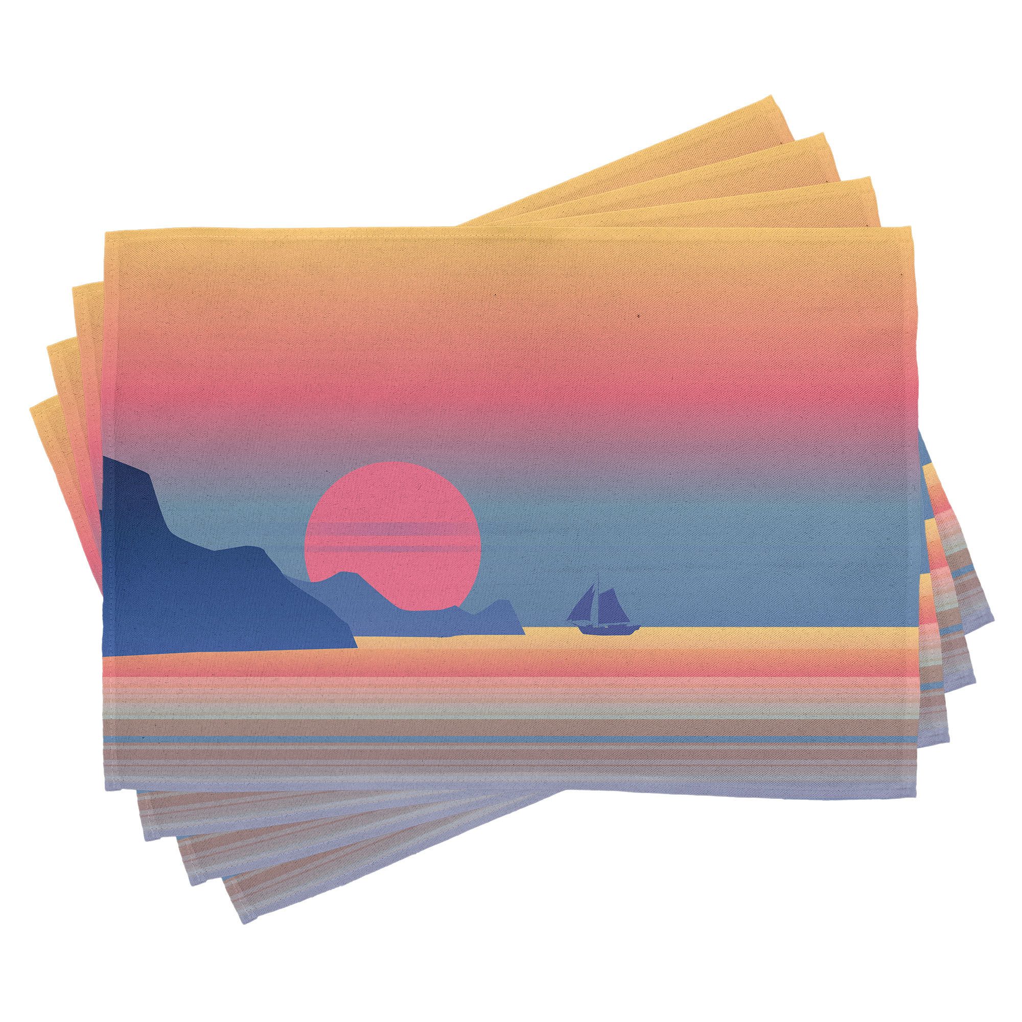 Ein vierteiliges Tischmattenset, je 30 cm lang und 45 cm breit. Mit handgenähten Kanten.