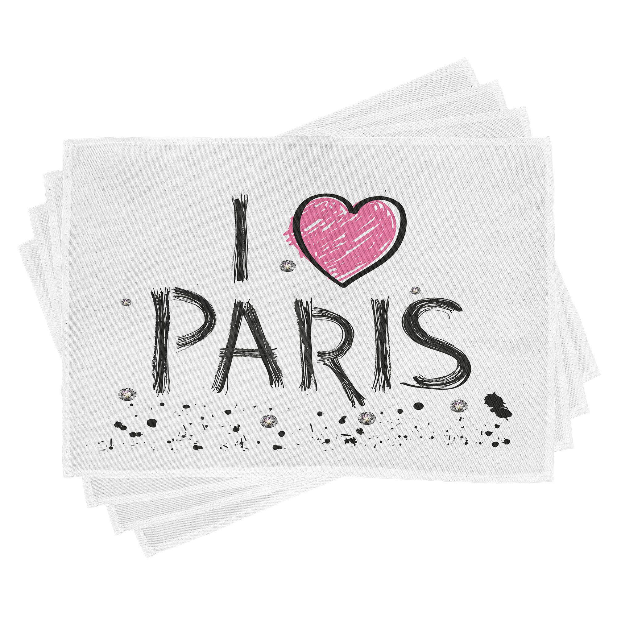 Ein vierteiliges Tischmattenset, je 30 cm lang und 45 cm breit. Mit handgenähten Kanten.