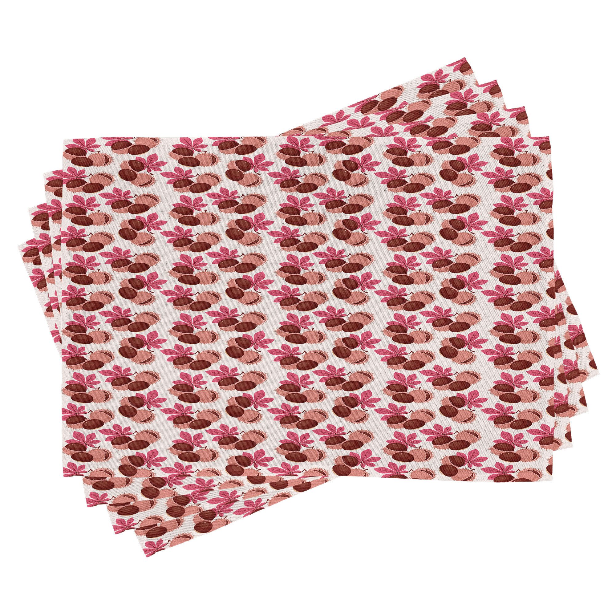 Ein vierteiliges Tischmattenset, je 30 cm lang und 45 cm breit. Mit handgenähten Kanten.