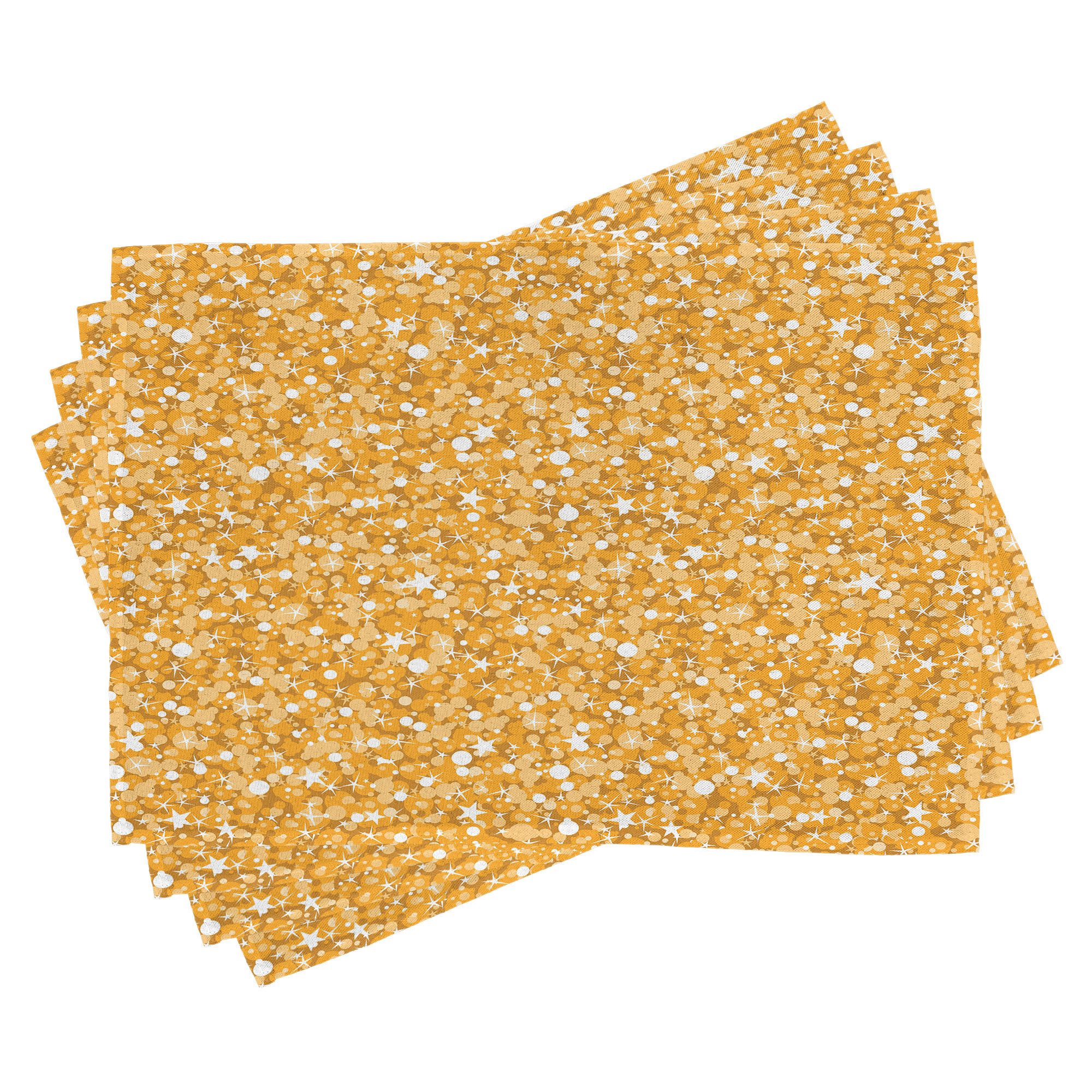 Ein vierteiliges Tischmattenset, je 30 cm lang und 45 cm breit. Mit handgenähten Kanten.