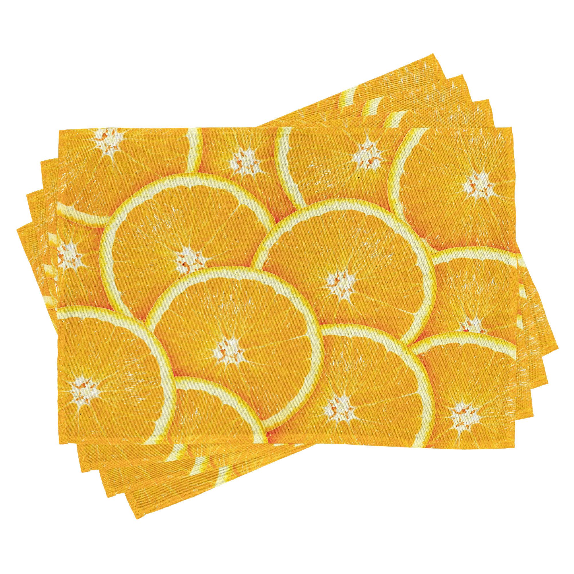 Ein vierteiliges Tischmattenset, je 30 cm lang und 45 cm breit. Mit handgenähten Kanten.