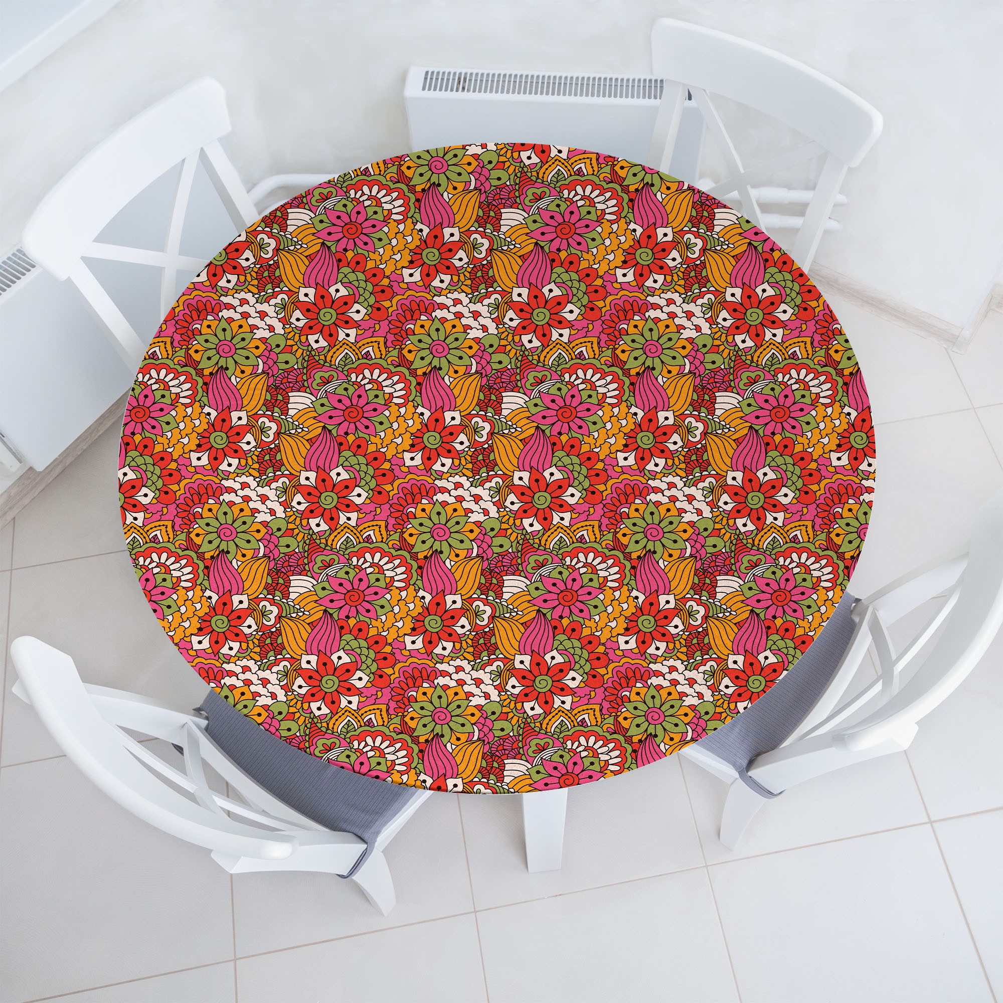 Abakuhaus Tischdecke Rundum-elastische Stofftischdecke, Bunt Floral Leuchtende Kunst