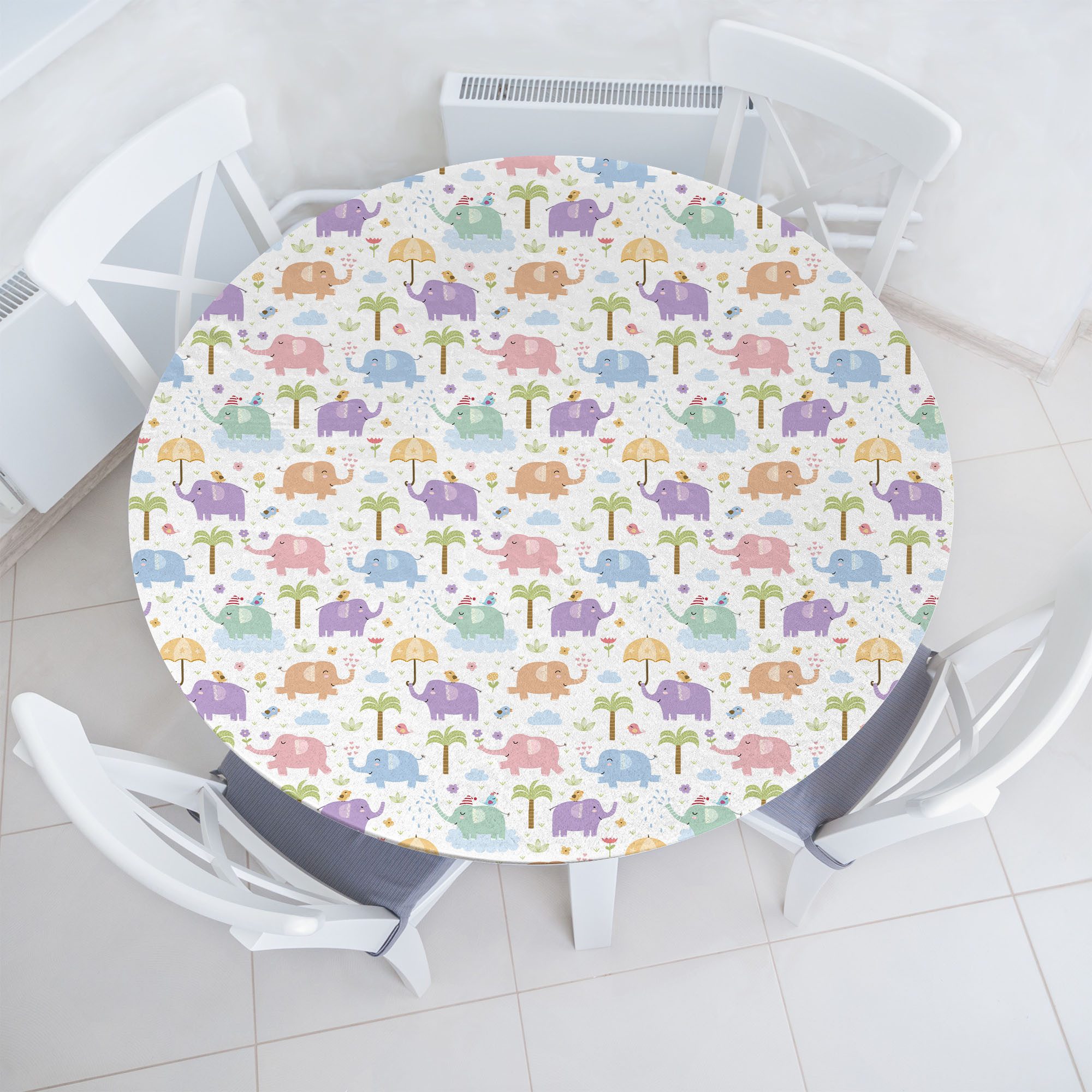 Abakuhaus Tischdecke Rundum-elastische Stofftischdecke, Elefant Childish-Dschungel-Tier