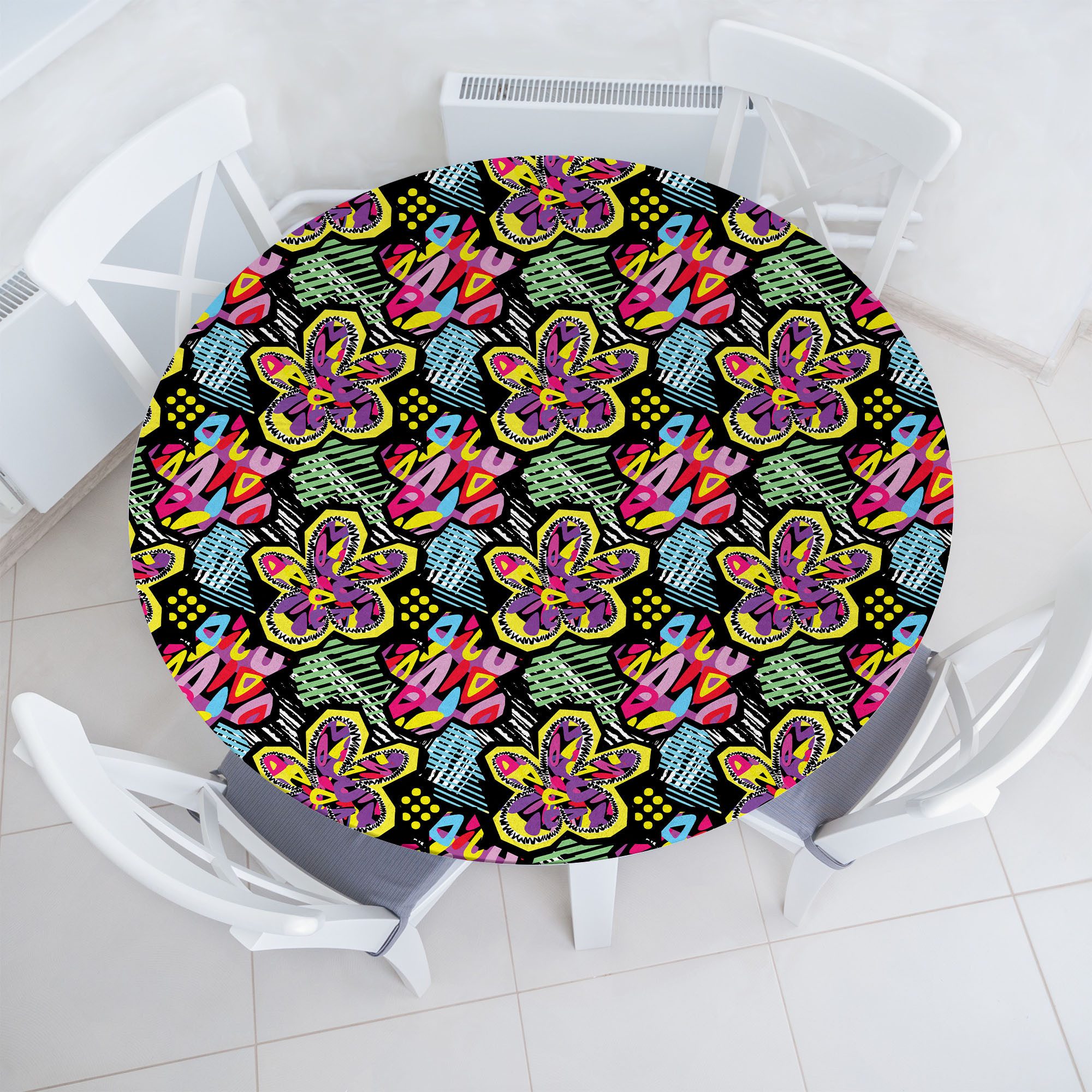 Präsentation unseres stilvollen und vielseitigen elastischen Rundtischtuchs. Entdecken Sie die herausragende Qualität unseres Premium-Rundtischtuchs aus 100 % hochwertigem, gesponnenem Polyester, das sorgfältig für den Innen- und Außenbereich entwickelt wurde. Unser elastischer Rand gewährleistet eine perfekte Passform für jeden Tisch und bietet außergewöhnliche Strapazierfähigkeit sowie Wasserbeständigkeit, um Kratzer zu verhindern, ohne Spuren zu hinterlassen. Dank des elastischen Bands lässt es sich einfach installieren, ohne zu verrutschen. Vielseitigkeit genießen Unsere runde Tischdecke ist eine vielseitige Option für den täglichen Gebrauch, Partys, Feiertage und verschiedene Veranstaltungen wie Catering, Cafés, Abendessen, Brunchs, Potlucks, Grillpartys, Buffets, Indoor- und Outdoor-Veranstaltungen, Hochzeiten und mehr. Dank der elastischen Kanten eignet sie sich für Hotels, Restaurants, Cafés, Terrassen und Zuhause. Über die Küche hinaus Mit ihren lebhaften Mustern ist diese Tischdecke perfekt für ungezwungene Abendessen, Picknicks, Campingausflüge und Partys. Wählen Sie aus einer Vielzahl von klassischen Designs, um jedes Dekor zu ergänzen und einen alten Tisch aufzupeppen. Ob Geburtstagsfeier, Einweihungsparty oder Ausdruck Ihrer Dankbarkeit gegenüber Eltern, Großeltern, Lehrern, Freunden oder einer besonderen Person in Ihrem Leben. Tolle Designs und Muster Ob Boho, lustig, hippie, modern, vintage, abstrakt, minimalistisch, psychedelisch, natur, romantisch und mehr! Entdecken Sie unsere umfangreiche Sammlung von Farbpaletten und einzigartigen Designs. Erwarten Sie kräftige, lebendige Farben und kunstvolle Details, die jeden Raum aufwerten. Pflegeleichte Anleitung Einfach in der Waschmaschine im Kalt- oder Feinwaschgang waschen. Trocknen und bügeln Sie sie bei niedriger Hitze und sie sind so gut wie neu.