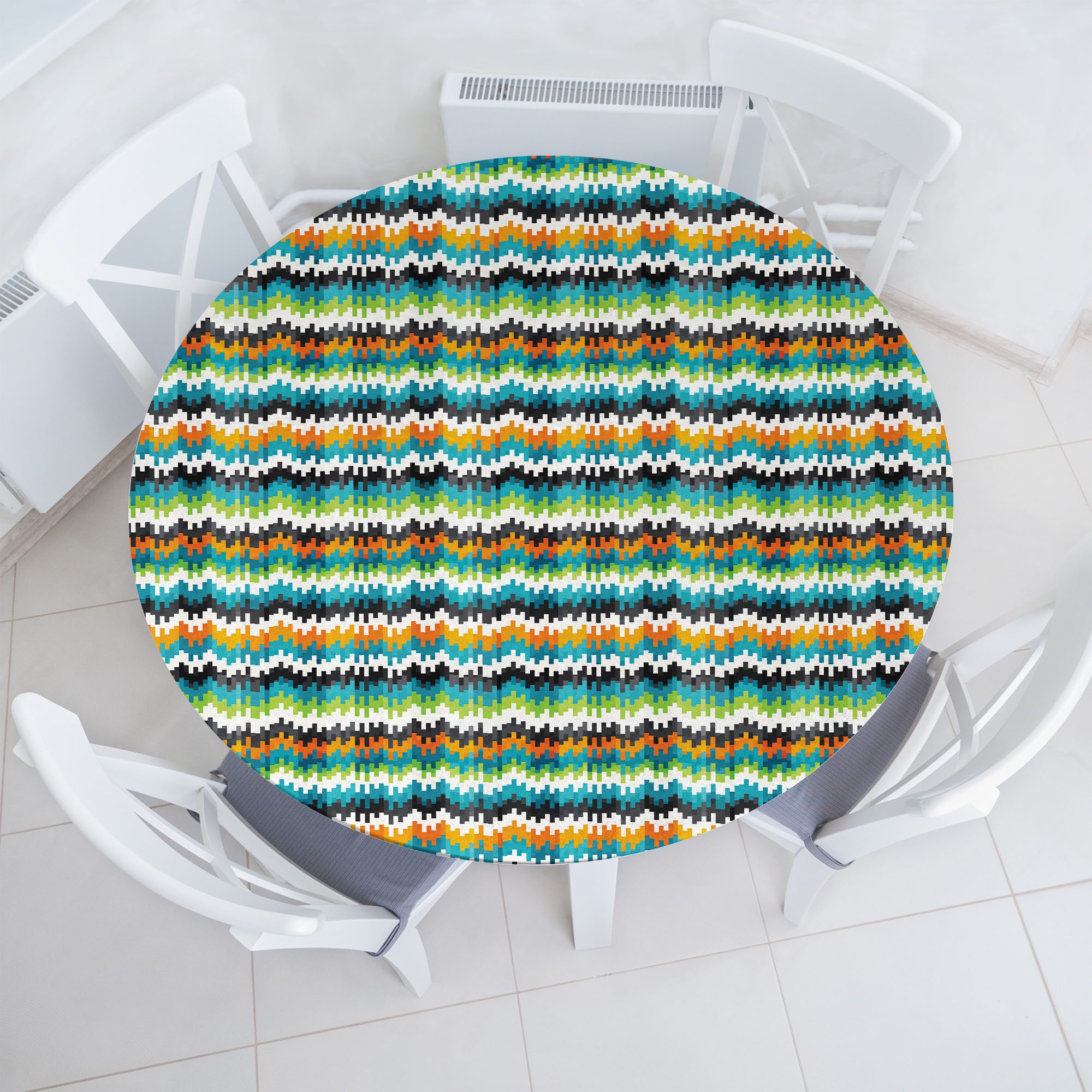 Präsentation unseres stilvollen und vielseitigen elastischen Rundtischtuchs. Entdecken Sie die herausragende Qualität unseres Premium-Rundtischtuchs aus 100 % hochwertigem, gesponnenem Polyester, das sorgfältig für den Innen- und Außenbereich entwickelt wurde. Unser elastischer Rand gewährleistet eine perfekte Passform für jeden Tisch und bietet außergewöhnliche Strapazierfähigkeit sowie Wasserbeständigkeit, um Kratzer zu verhindern, ohne Spuren zu hinterlassen. Dank des elastischen Bands lässt es sich einfach installieren, ohne zu verrutschen. Vielseitigkeit genießen Unsere runde Tischdecke ist eine vielseitige Option für den täglichen Gebrauch, Partys, Feiertage und verschiedene Veranstaltungen wie Catering, Cafés, Abendessen, Brunchs, Potlucks, Grillpartys, Buffets, Indoor- und Outdoor-Veranstaltungen, Hochzeiten und mehr. Dank der elastischen Kanten eignet sie sich für Hotels, Restaurants, Cafés, Terrassen und Zuhause. Über die Küche hinaus Mit ihren lebhaften Mustern ist diese Tischdecke perfekt für ungezwungene Abendessen, Picknicks, Campingausflüge und Partys. Wählen Sie aus einer Vielzahl von klassischen Designs, um jedes Dekor zu ergänzen und einen alten Tisch aufzupeppen. Ob Geburtstagsfeier, Einweihungsparty oder Ausdruck Ihrer Dankbarkeit gegenüber Eltern, Großeltern, Lehrern, Freunden oder einer besonderen Person in Ihrem Leben. Tolle Designs und Muster Ob Boho, lustig, hippie, modern, vintage, abstrakt, minimalistisch, psychedelisch, natur, romantisch und mehr! Entdecken Sie unsere umfangreiche Sammlung von Farbpaletten und einzigartigen Designs. Erwarten Sie kräftige, lebendige Farben und kunstvolle Details, die jeden Raum aufwerten. Pflegeleichte Anleitung Einfach in der Waschmaschine im Kalt- oder Feinwaschgang waschen. Trocknen und bügeln Sie sie bei niedriger Hitze und sie sind so gut wie neu.