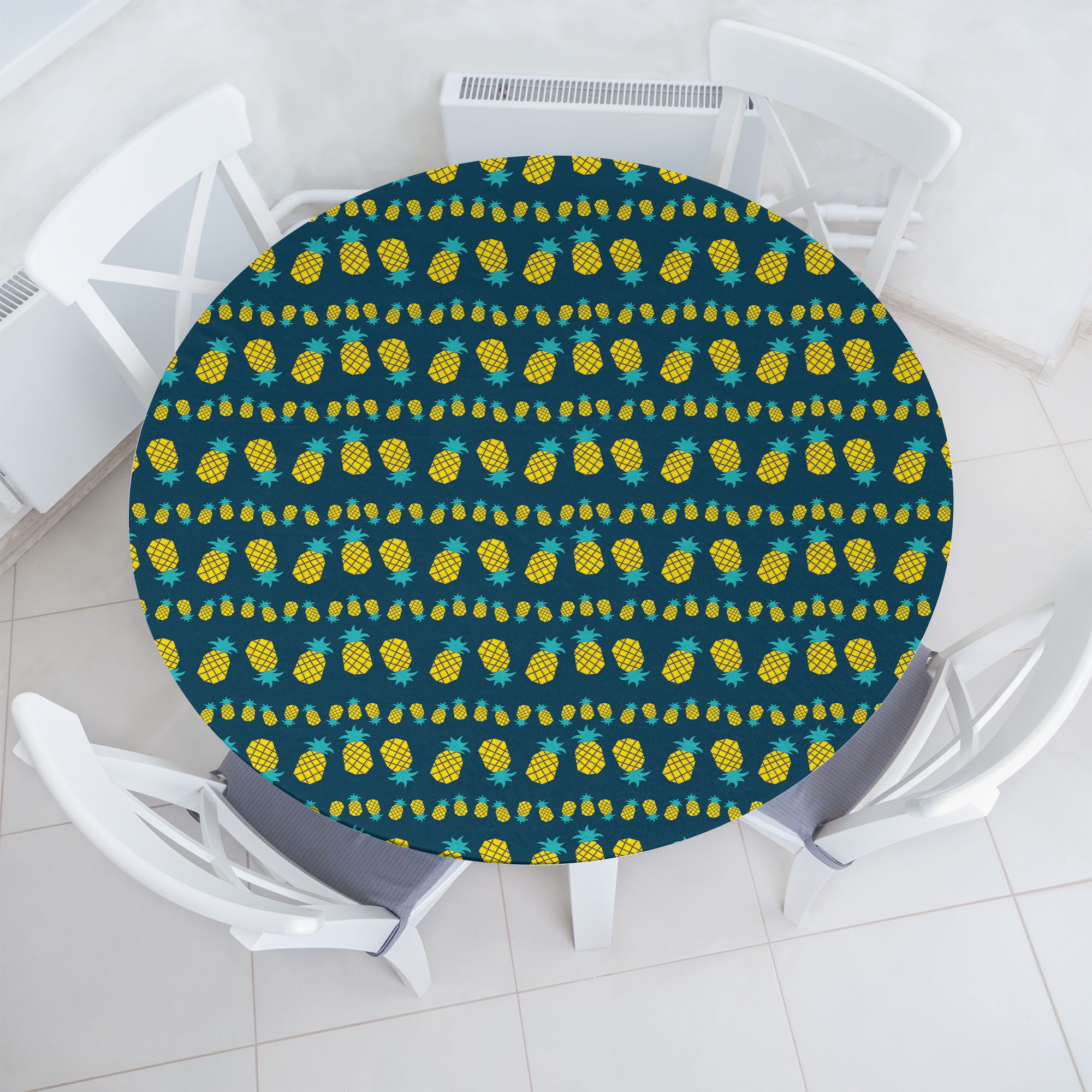 Präsentation unseres stilvollen und vielseitigen elastischen Rundtischtuchs. Entdecken Sie die herausragende Qualität unseres Premium-Rundtischtuchs aus 100 % hochwertigem, gesponnenem Polyester, das sorgfältig für den Innen- und Außenbereich entwickelt wurde. Unser elastischer Rand gewährleistet eine perfekte Passform für jeden Tisch und bietet außergewöhnliche Strapazierfähigkeit sowie Wasserbeständigkeit, um Kratzer zu verhindern, ohne Spuren zu hinterlassen. Dank des elastischen Bands lässt es sich einfach installieren, ohne zu verrutschen. Vielseitigkeit genießen Unsere runde Tischdecke ist eine vielseitige Option für den täglichen Gebrauch, Partys, Feiertage und verschiedene Veranstaltungen wie Catering, Cafés, Abendessen, Brunchs, Potlucks, Grillpartys, Buffets, Indoor- und Outdoor-Veranstaltungen, Hochzeiten und mehr. Dank der elastischen Kanten eignet sie sich für Hotels, Restaurants, Cafés, Terrassen und Zuhause. Über die Küche hinaus Mit ihren lebhaften Mustern ist diese Tischdecke perfekt für ungezwungene Abendessen, Picknicks, Campingausflüge und Partys. Wählen Sie aus einer Vielzahl von klassischen Designs, um jedes Dekor zu ergänzen und einen alten Tisch aufzupeppen. Ob Geburtstagsfeier, Einweihungsparty oder Ausdruck Ihrer Dankbarkeit gegenüber Eltern, Großeltern, Lehrern, Freunden oder einer besonderen Person in Ihrem Leben. Tolle Designs und Muster Ob Boho, lustig, hippie, modern, vintage, abstrakt, minimalistisch, psychedelisch, natur, romantisch und mehr! Entdecken Sie unsere umfangreiche Sammlung von Farbpaletten und einzigartigen Designs. Erwarten Sie kräftige, lebendige Farben und kunstvolle Details, die jeden Raum aufwerten. Pflegeleichte Anleitung Einfach in der Waschmaschine im Kalt- oder Feinwaschgang waschen. Trocknen und bügeln Sie sie bei niedriger Hitze und sie sind so gut wie neu.