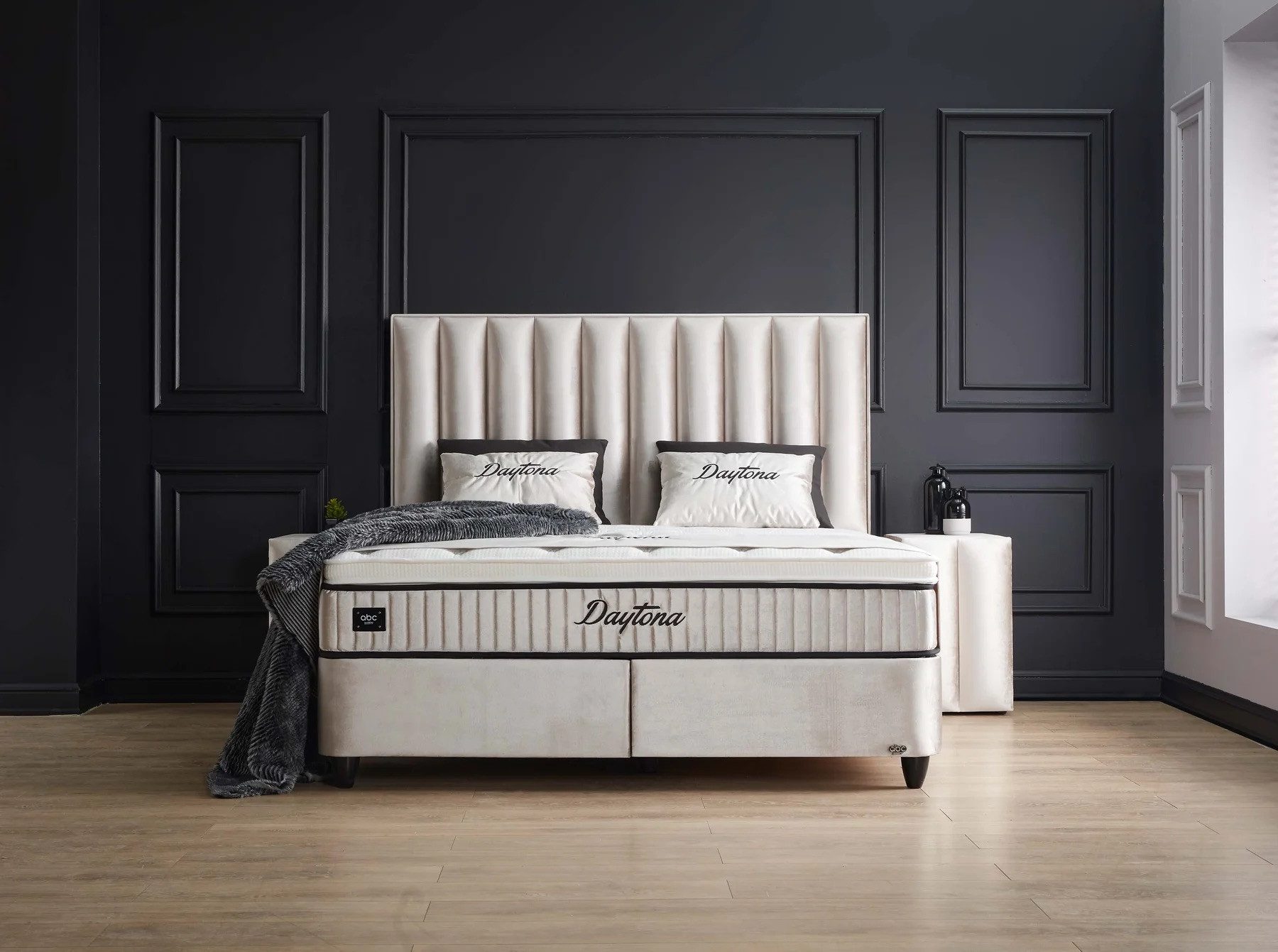 Entdecken Sie das ABC Bedding Boxspringbett DAYTONA, das Ihnen mit seiner luxuriösen Ausstattung und Funktionalität ein unvergleichliches Schlaferlebnis bietet. Dieses Bettgestell mit Matratze vereint Komfort, Stil und praktischen Stauraum und ist somit die ideale Wahl für Ihr Schlafzimmer.
