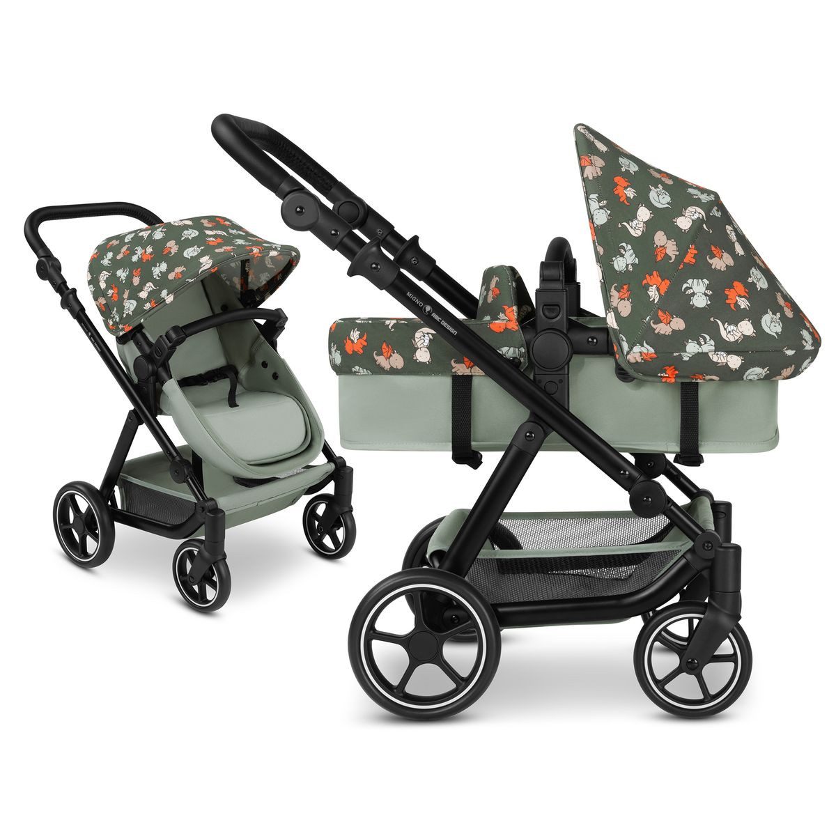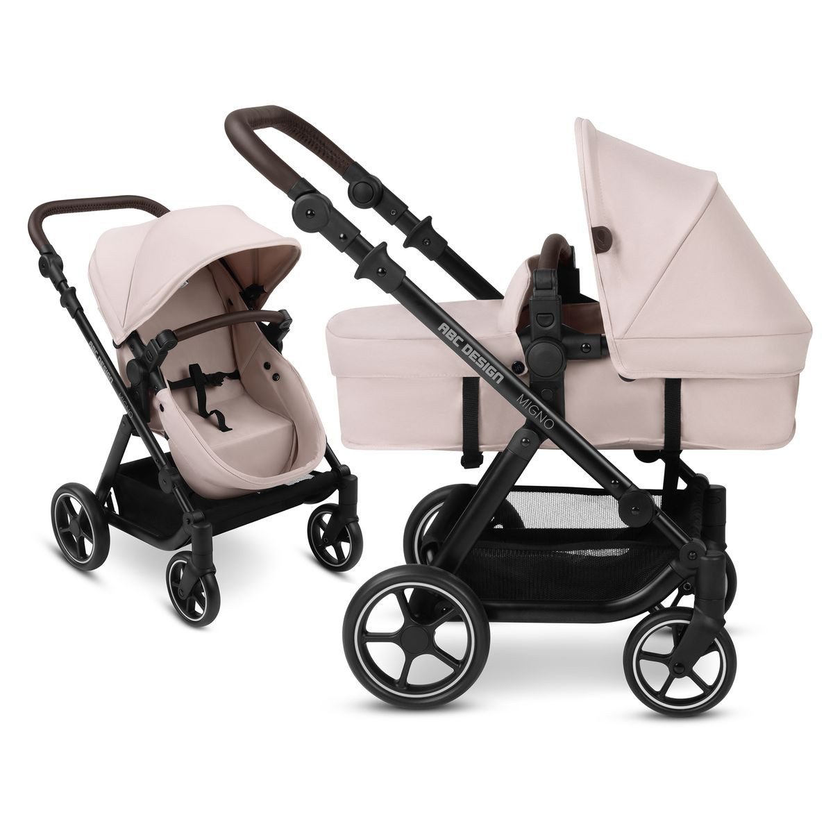 Wie auch seine großen Vorbilder überzeugt der ABC Design Puppenwagen Migno mit seinem stilvollen Design. Mit dem edel glänzendem Chromgestell setzt Dein Kind Trends. Die schicken Weisswand-Räder verleihen dem Puppenkinderwagen einen eindrucksvollen und edlen Look.